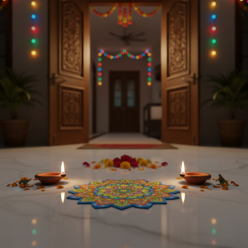 🌸 3D Rangoli Design – Lotus bloom mandala with raised detailing for a stunning 3D look.