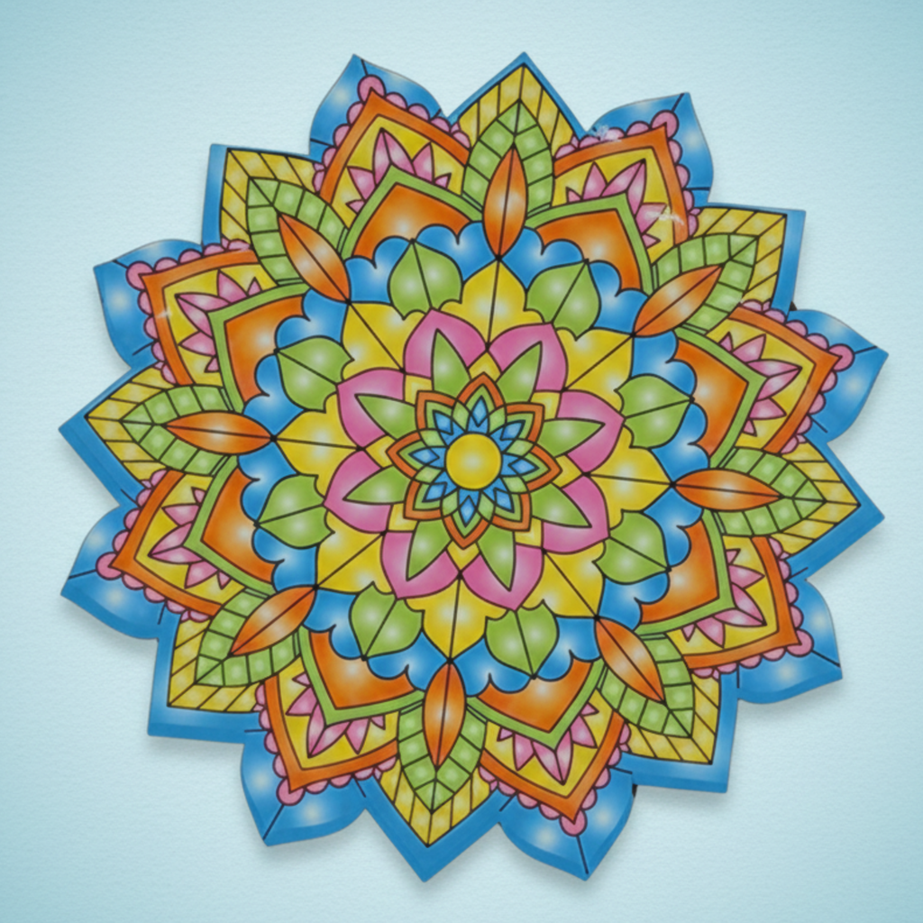 Add a vibrant touch of tradition to your celebrations with this 3D MDF Lotus Bloom Rangoli, designed with layered detailing for a striking dimensional effect. Featuring a colorful blend of green, blue, orange, pink, and yellow, this mandala-style lotus rangoli radiates positivity and elegance. The 3D artistry makes it look visually rich and festive, unlike flat powder rangolis. Crafted from premium MDF, it is eco-friendly, reusable, and long-lasting, making it perfect for entrances, pooja ghars, and living spaces. Available in 12 inch, 8 inch, and 6 inch sizes, this rangoli is an ideal choice for Diwali and festive décor.