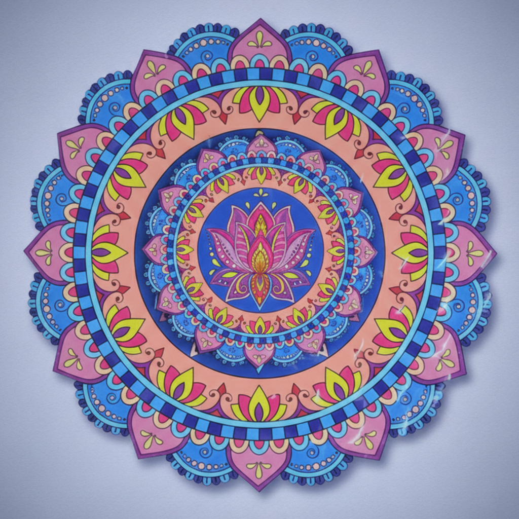 🎨 Vibrant Colors – Lotus and mandala patterns in pink, blue, and yellow.