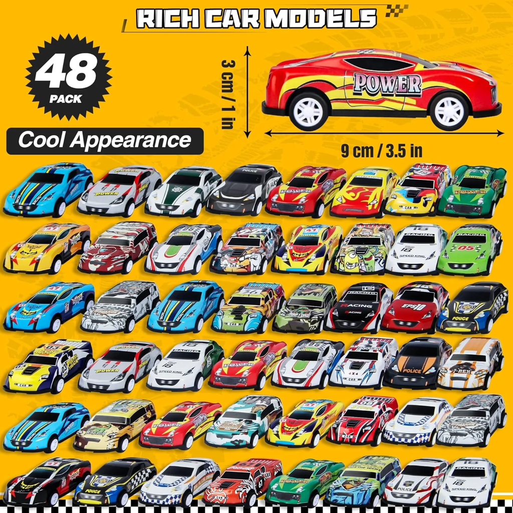 - 48-Piece Car Set: Includes a variety of mini racing cars with unique and vibrant designs.