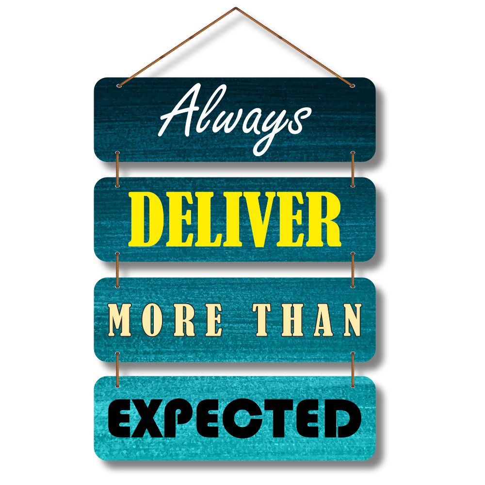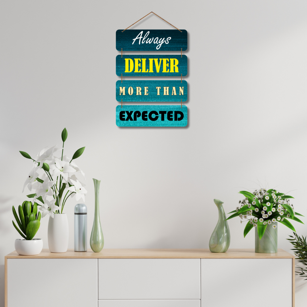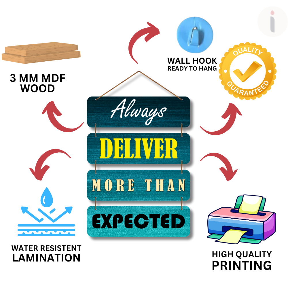 Inspiration to your space with this bold wall hanging carrying the powerful message “Always Deliver More Than Expected.” Crafted with vibrant colors and standout typography, it’s perfect for offices, study rooms, or workspaces. A daily reminder to give your best, exceed expectations, and embrace excellence in everything you do.