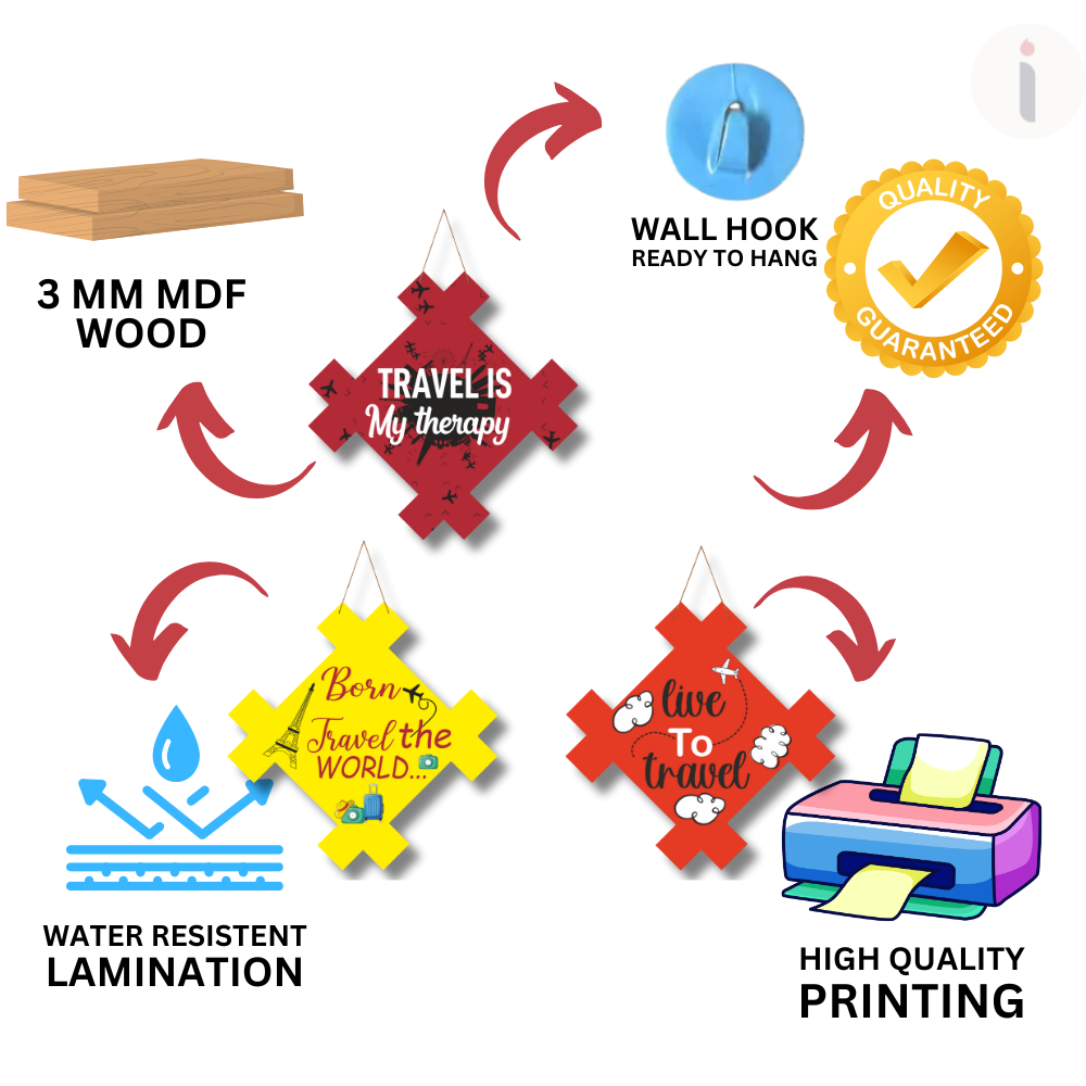 Bring your wanderlust to life with this Travel Vibes Wall Hanging Set. Featuring inspiring quotes like “Travel is My Therapy,” “Born to Travel the World,” and “Live to Travel,” these vibrant pieces are perfect for globetrotters at heart. Ideal for bedrooms, living rooms, or travel corners, they infuse your space with adventure, positivity, and the joy of exploration.