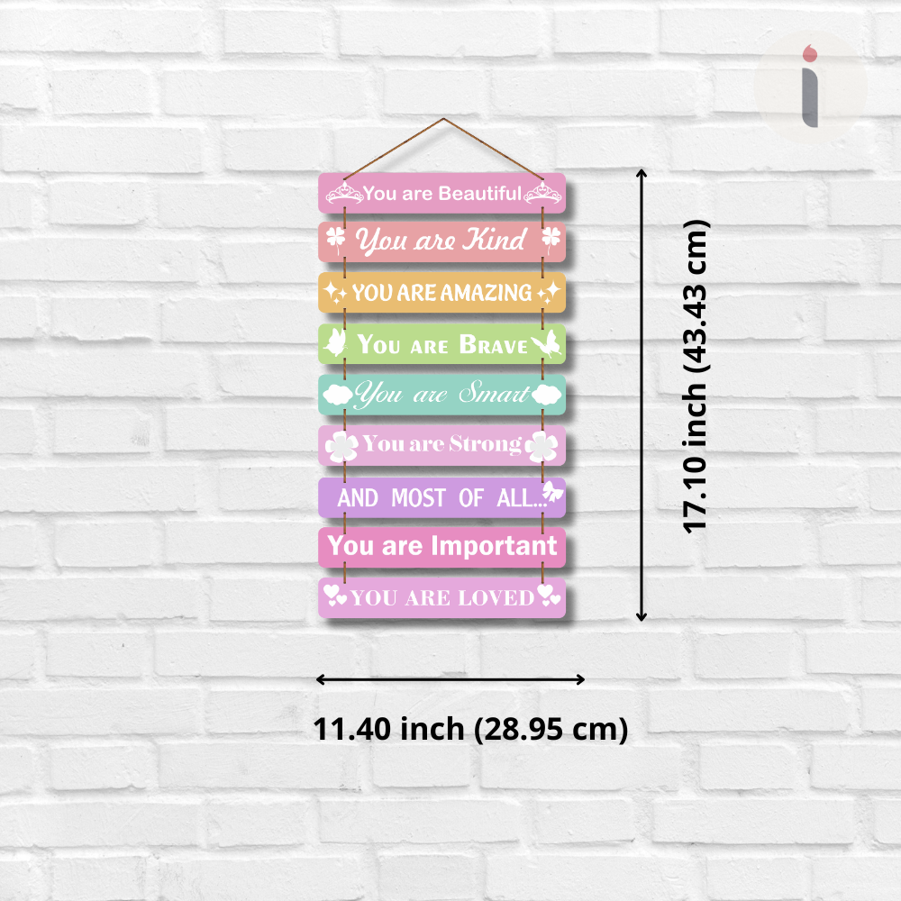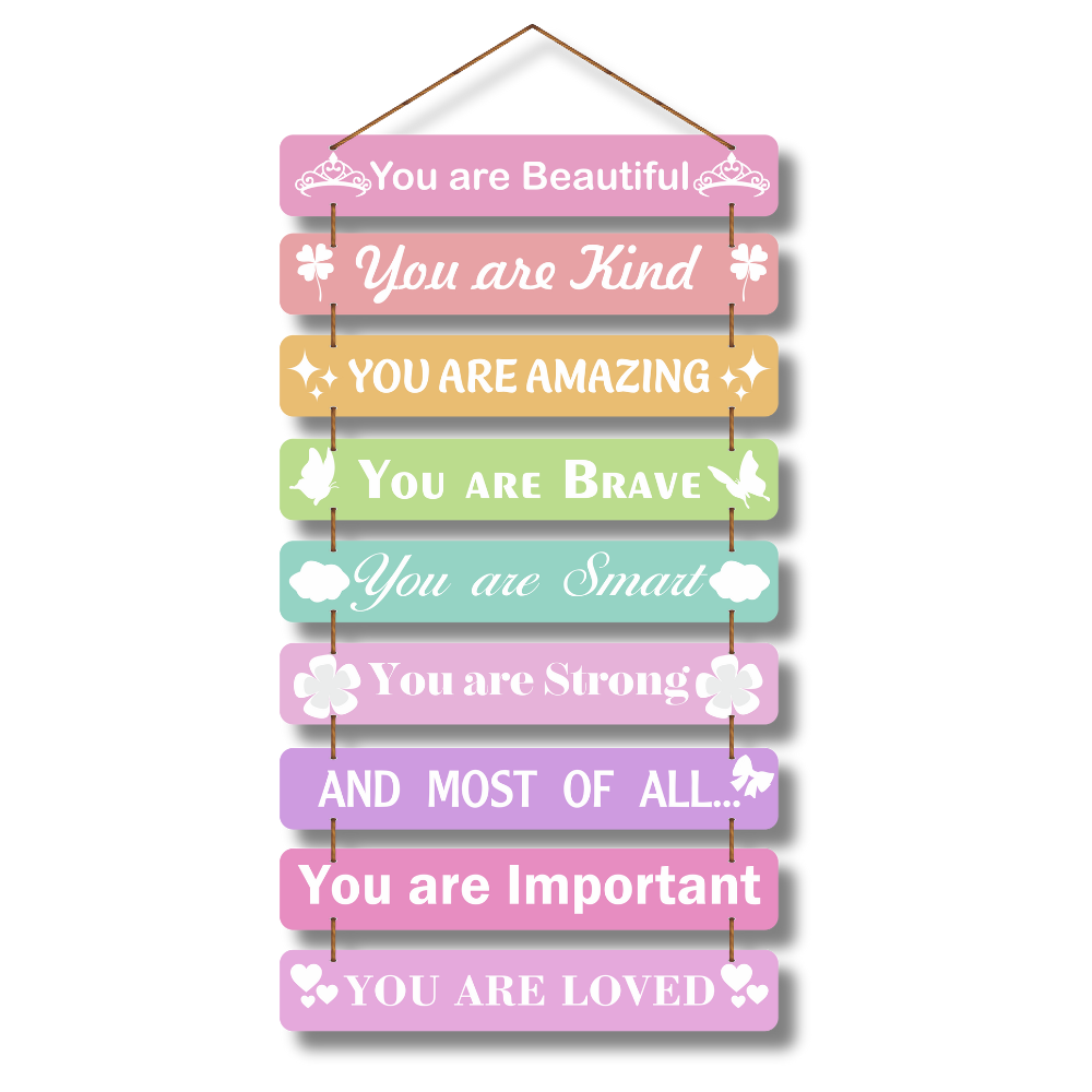 Brighten up any room with this colorful affirmation wall hanging that reminds you of your worth every day. With uplifting words like “You are Brave, Kind, Smart, and Loved,” it spreads positivity and encouragement. Perfect for kids’ rooms, study spaces, or as a heartfelt gift, it inspires confidence and joy daily..