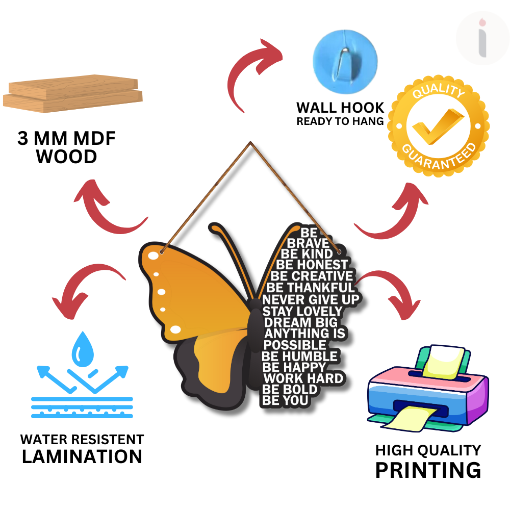 This inspiring butterfly-themed wall hanging features powerful life messages like Be Brave, Be Kind, Dream Big, and Be You. With a vibrant design symbolizing growth and positivity, it adds motivation and charm to any space. Perfect for homes, kids’ rooms, classrooms, or offices, it encourages confidence, creativity, and a positive mindset every day.