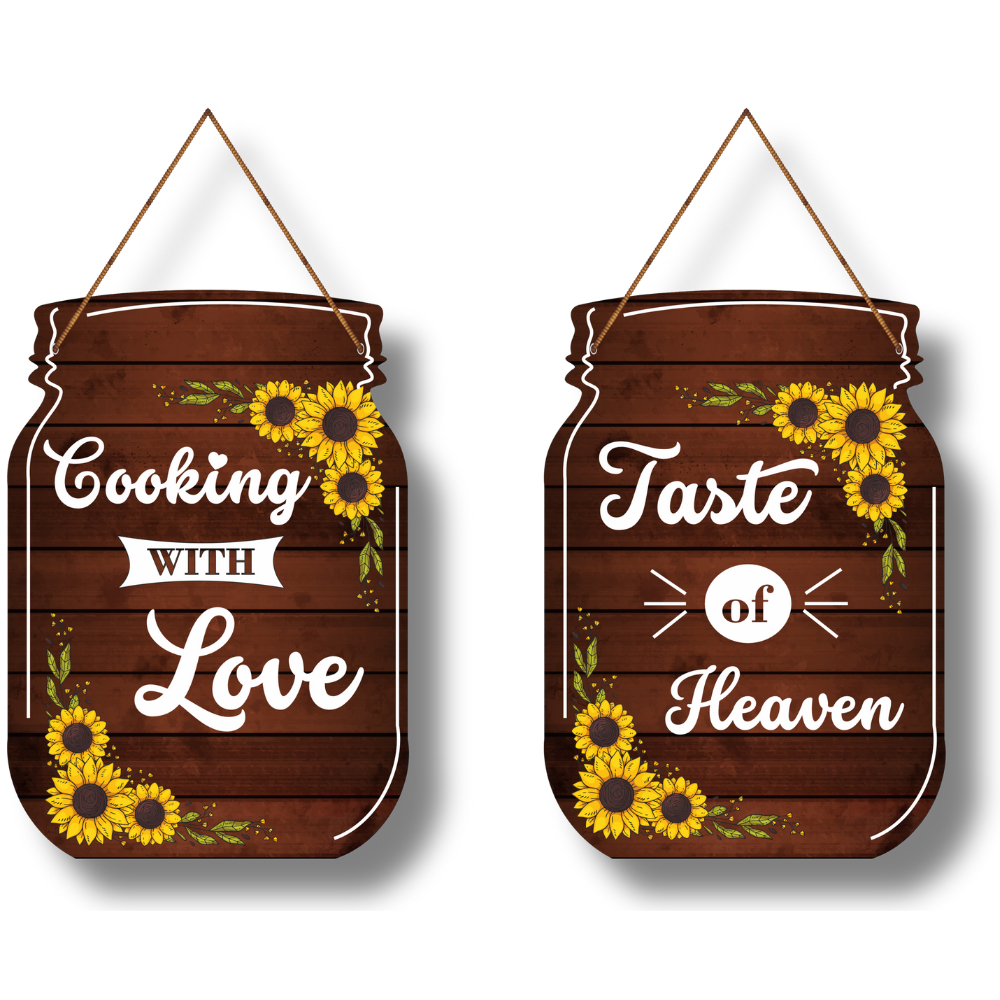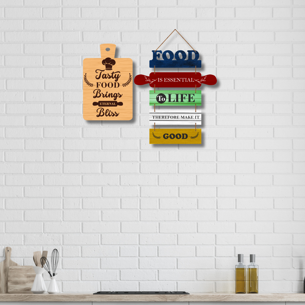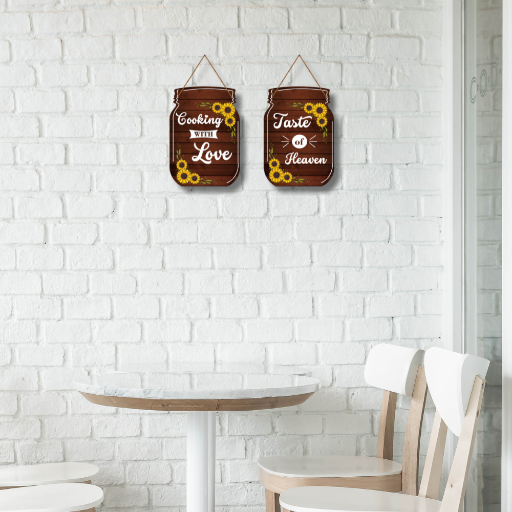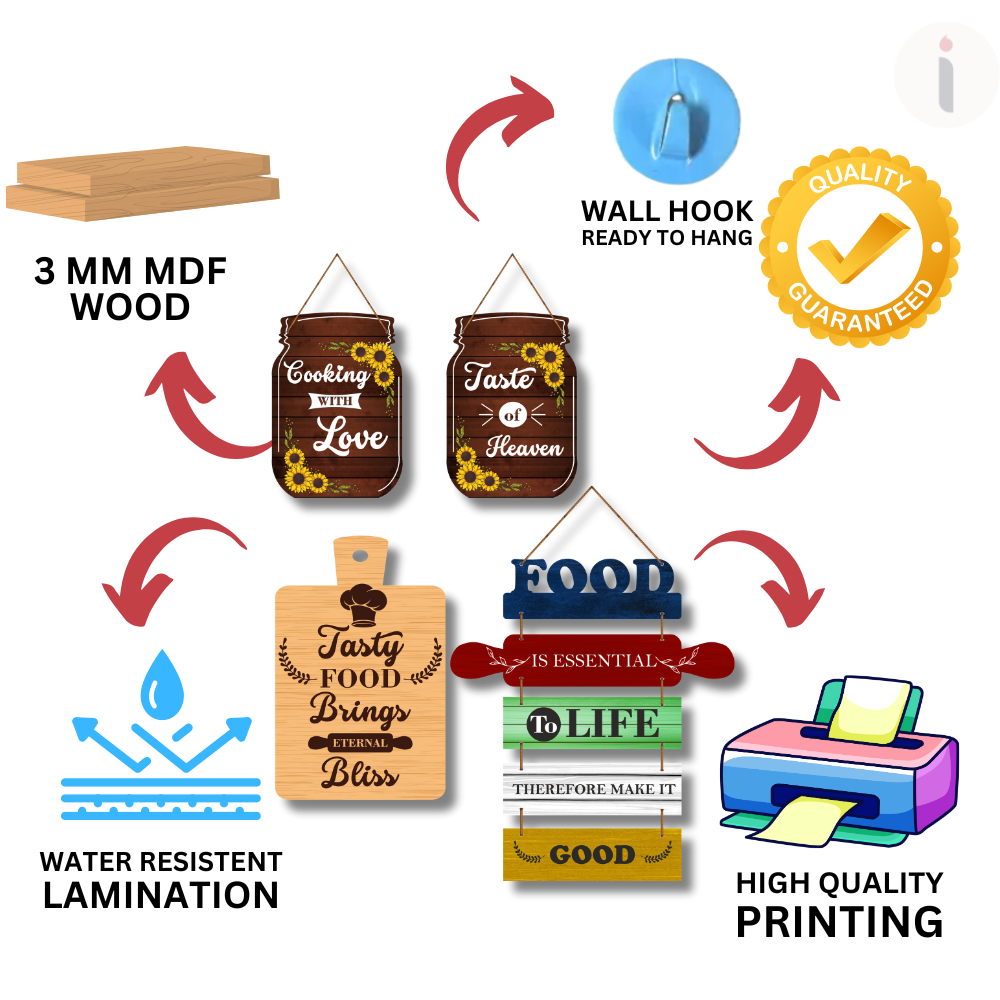 Celebrate the joy of cooking and eating with this charming wall hanging set featuring quotes like “Cooking with Love,” “Taste of Heaven,” and “Food is Essential to Life, Therefore Make it Good.” Designed with rustic textures and vibrant motifs, it’s a perfect addition to kitchens, cafés, or dining spaces, reminding everyone that good food brings eternal bliss.