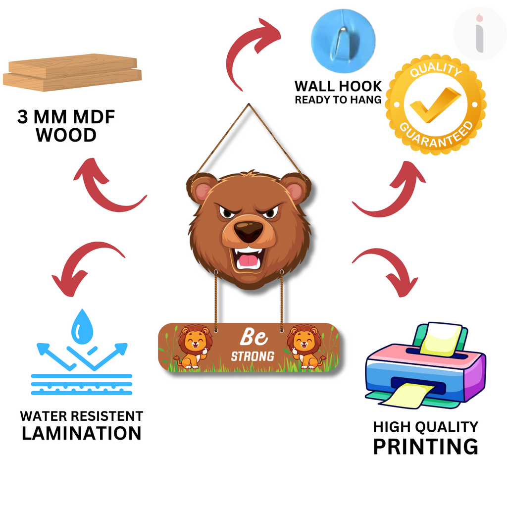 Unleash your inner power with this bold wall hanging featuring a fierce bear and adorable lion cubs. The message “Be Strong” is a perfect daily reminder to face challenges with courage and confidence. Ideal for kids’ rooms, classrooms, or any space needing a boost of motivation and wild energy.