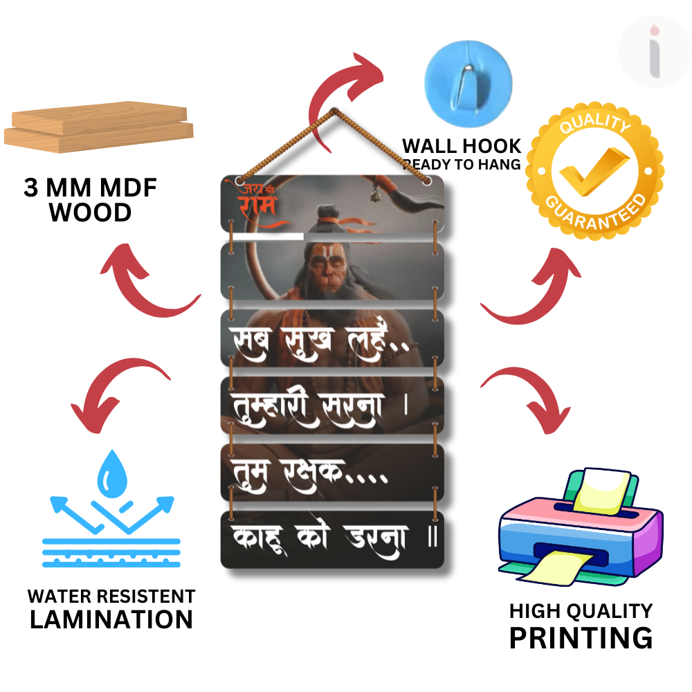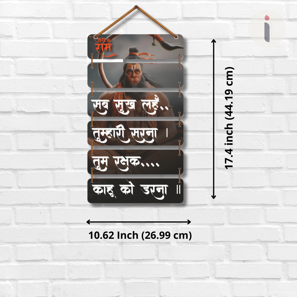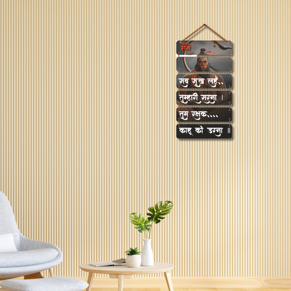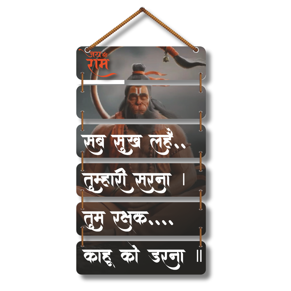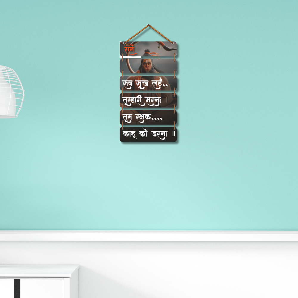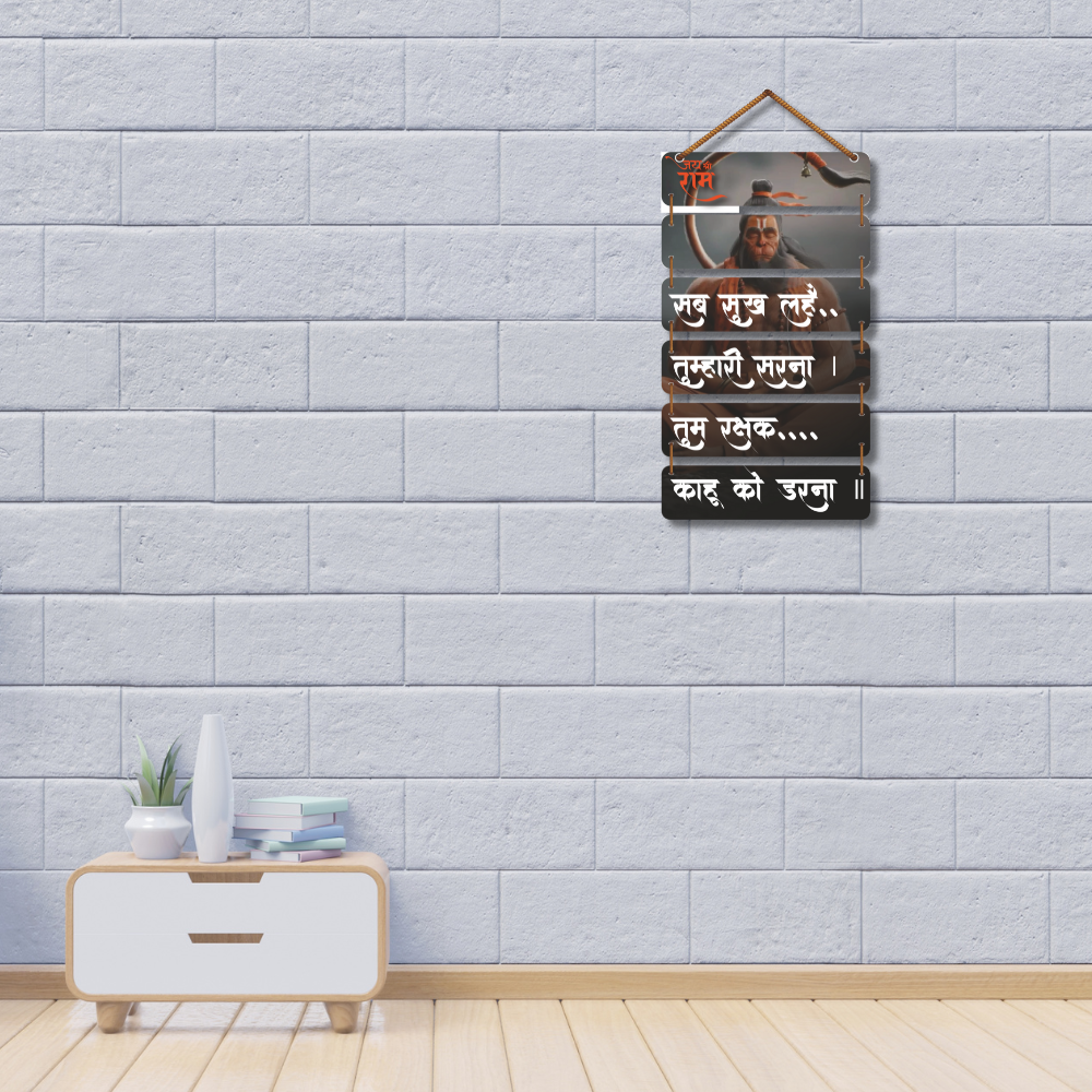 Bring home the blessings of Bajrangbali with this powerful Hanuman wall hanging inscribed with sacred verses. Designed with devotion, it symbolizes strength, courage, and protection. A perfect addition to your pooja room or living space, it spreads positivity and reminds you that with Hanuman’s grace, all sorrows vanish and happiness prevails.