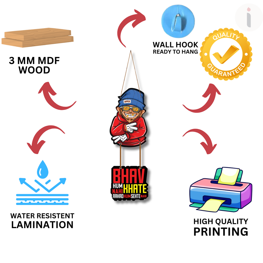 Bring on the swag with this funky and fearless wall hanging that screams confidence and cool attitude. Featuring a bold animated character and the desi quote “Bhav Hum Khate Nahi, Aakad Hum Sehte Nahi”, it's the perfect decor for teens’ rooms, bachelor pads, or anyone who lives life on their own terms.