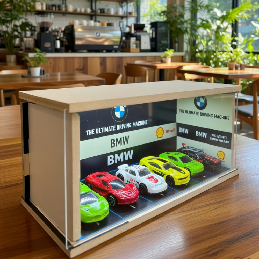 With integrated LED lighting, every detail of your diecast cars is highlighted, creating a refined and high-end display experience. The structured parking layout and bold BMW-themed backdrop give your collection a powerful, “ultimate driving machine” vibe. ✨