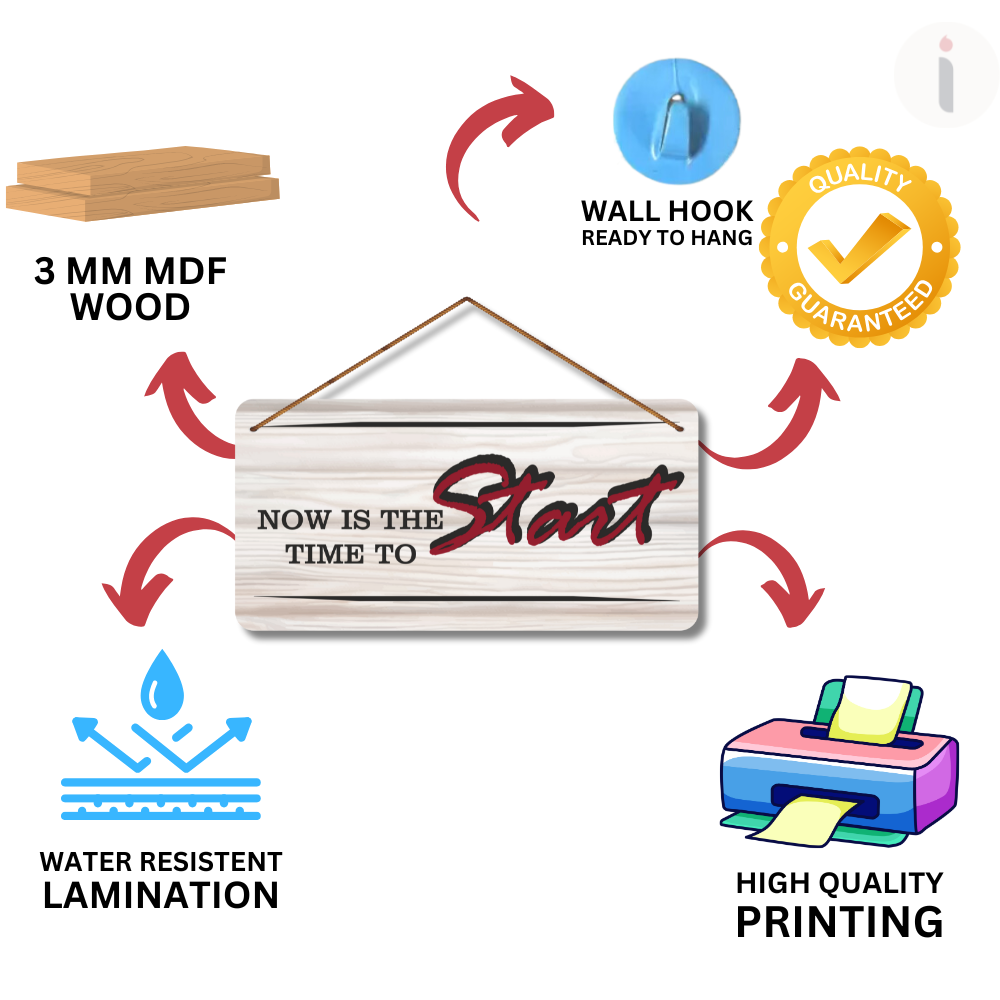 Stay motivated every day with this inspirational wall hanging that reads, “Now is the time to Start.” Designed with a rustic wooden background and bold typography, it serves as a powerful reminder to take action without delay. Perfect for homes, offices, or study spaces, this décor piece encourages positivity, determination, and the courage to begin.