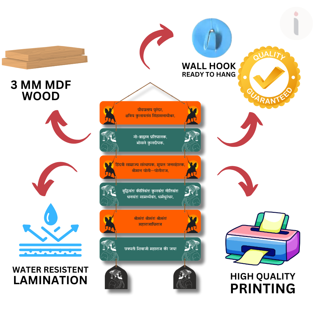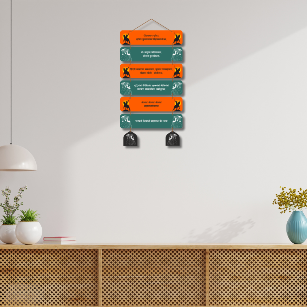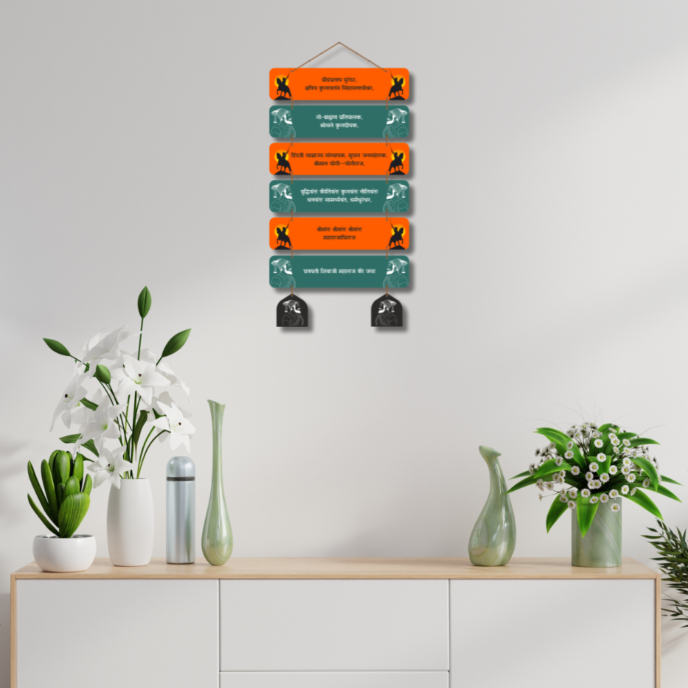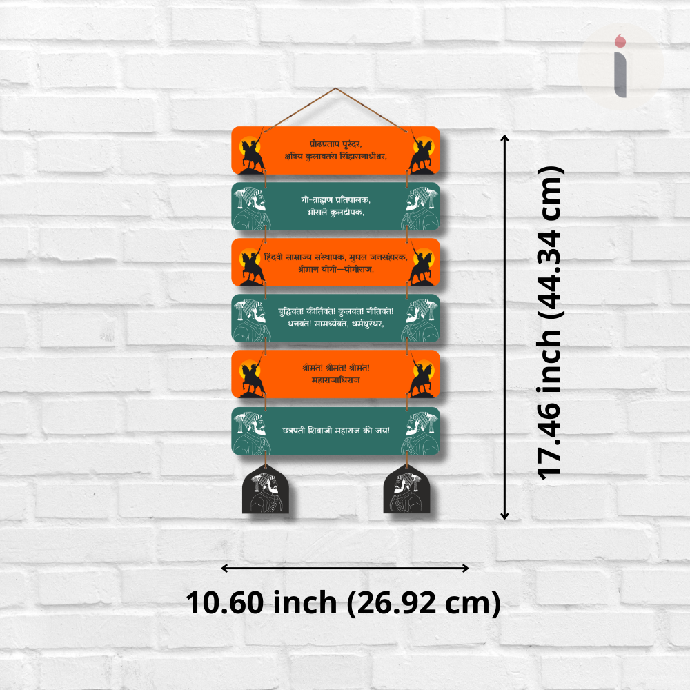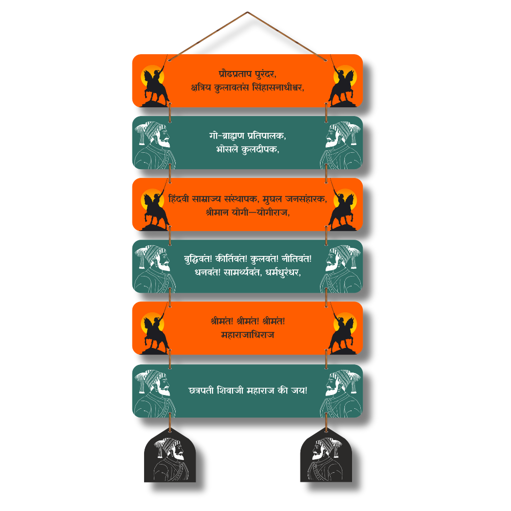This powerful wall hanging honors Chhatrapati Shivaji Maharaj, celebrating bravery, leadership, and pride through inspiring Sanskrit and Hindi verses. Designed in bold saffron and green tones with warrior imagery, it adds a sense of courage and patriotism to any space. Perfect for homes, offices, or gifting, it reflects respect for history and valor.