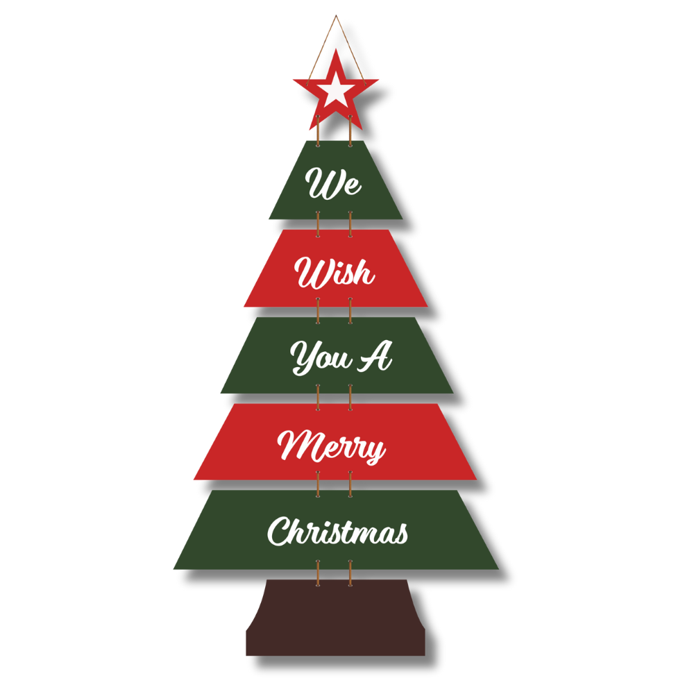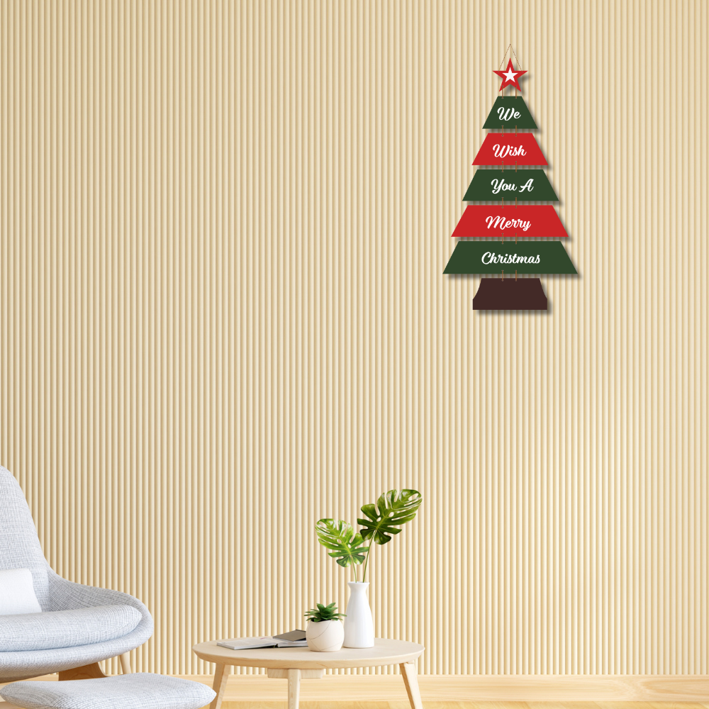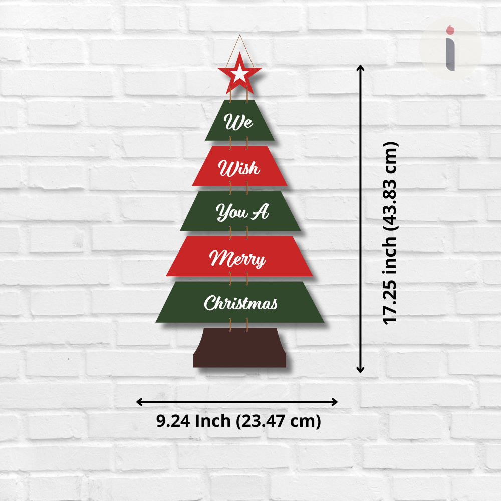 Celebrate the festive season with this charming Christmas tree–shaped wooden wall hanging that reads We Wish You A Merry Christmas. Decorated in vibrant red and green with a bright star on top, it spreads holiday cheer instantly. Perfect for living rooms, doors, or offices, this piece adds a warm, joyful, and decorative touch to your Christmas celebrations.