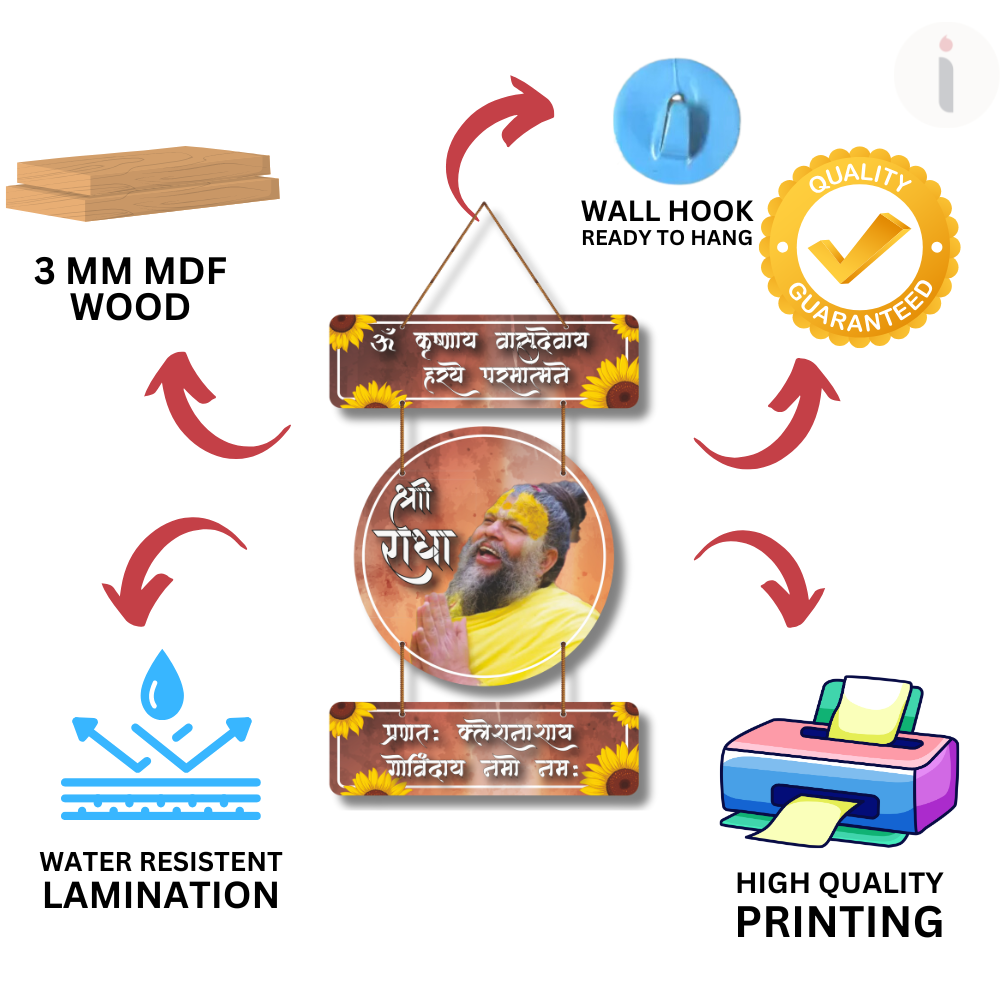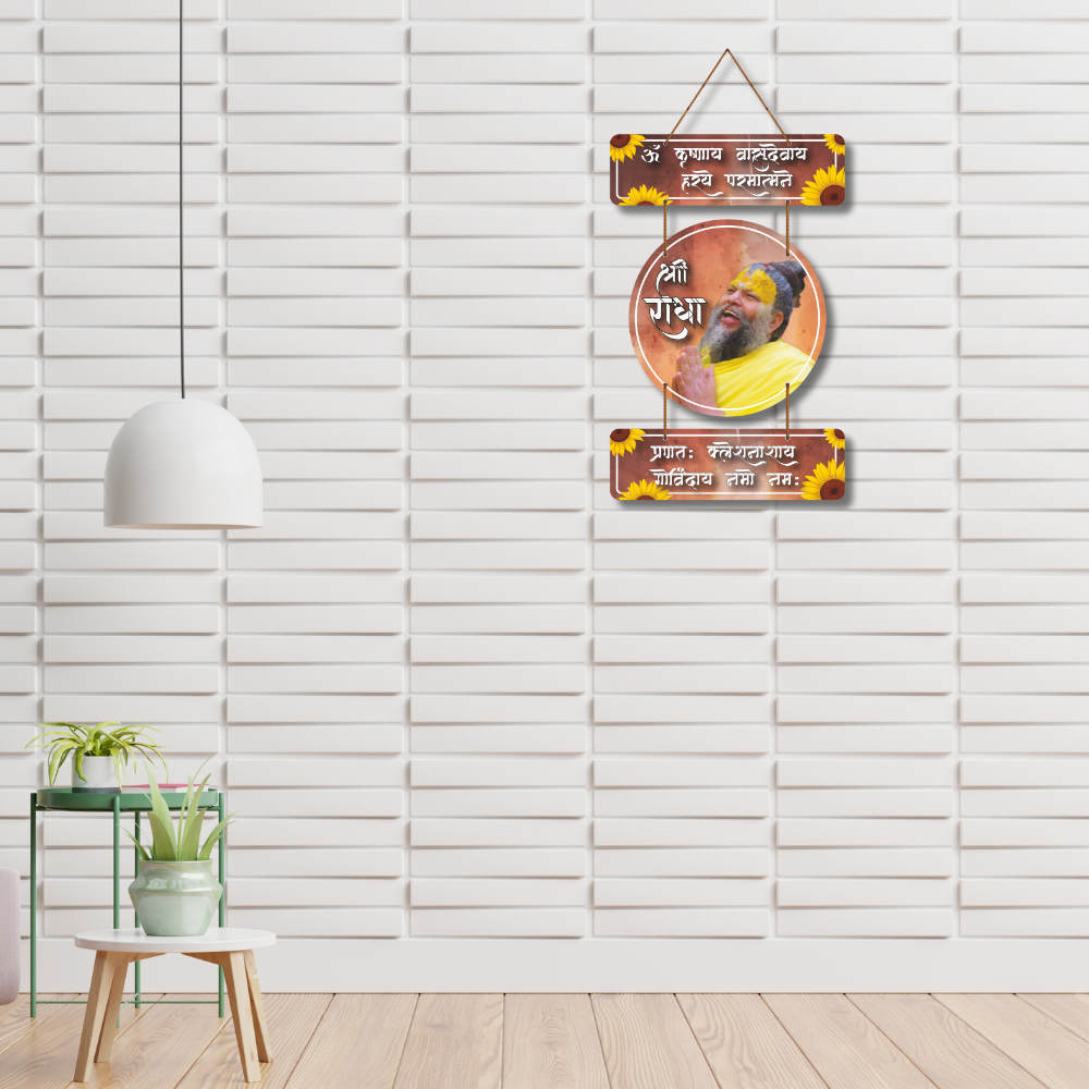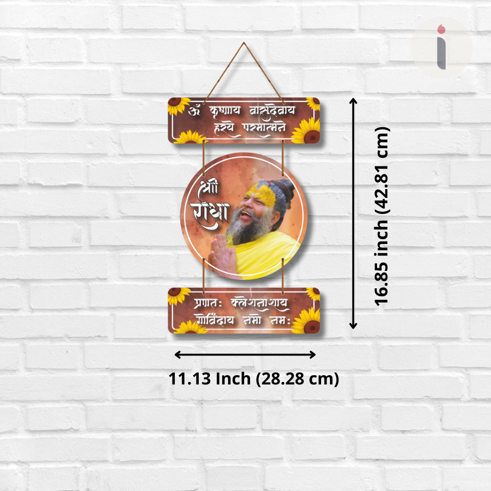 This devotional wall hanging radiates divine energy with its spiritual design, featuring sacred shlokas and a blissful depiction of bhakti. Surrounded by vibrant sunflower motifs, it symbolizes joy, purity, and devotion. A perfect addition to your prayer room or living space, it inspires peace, positivity, and a constant reminder of faith in Lord Krishna and Radha’s eternal love.