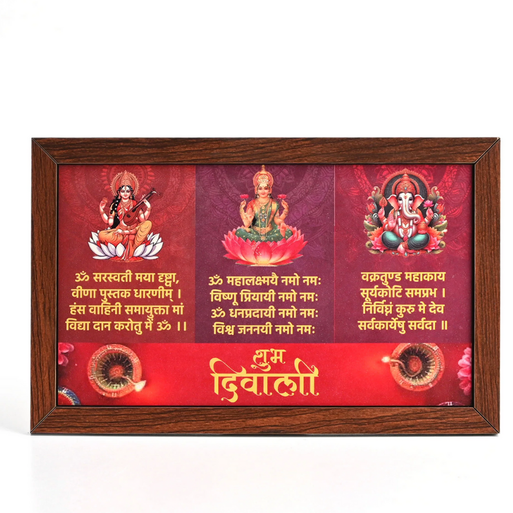 Crafted from premium quality wood, this Diwali frame is not just a decorative item but a symbol of blessings and good wishes. The vibrant colors and intricate details of the deities are designed to resonate with the festive spirit, making it an ideal gift for your loved ones during the festival of lights.