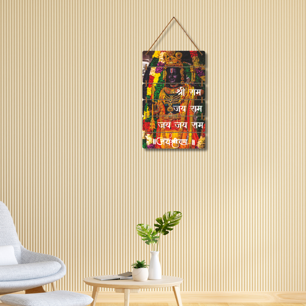 Bring divine blessings into your home with this vibrant Jai Shri Ram wooden wall hanging. Featuring a beautifully adorned idol of Lord Ram with intricate details and colorful floral decorations, it radiates spiritual strength and positivity. Ideal for temples, living spaces, or gifting, this devotional piece adds a sacred aura and inspires faith, devotion, and peace.