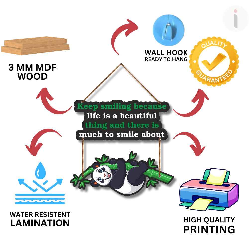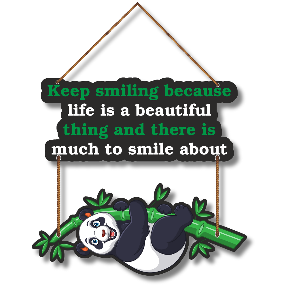 Brighten your space with this cheerful panda wall hanging carrying a heartwarming quote – “Keep smiling because life is a beautiful thing and there is much to smile about.” The playful panda on bamboo adds a fun and positive vibe, perfect for kids’ rooms, living spaces, or gifting. A daily reminder to stay happy and grateful.