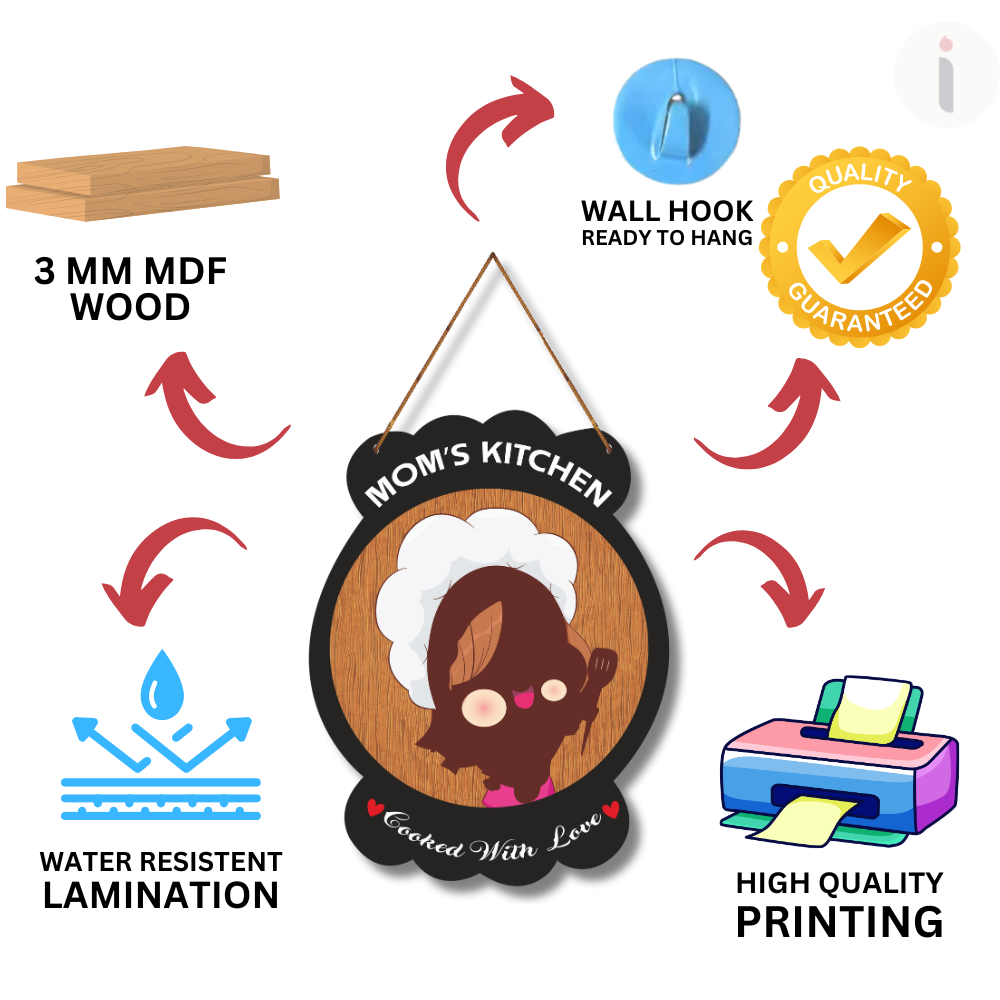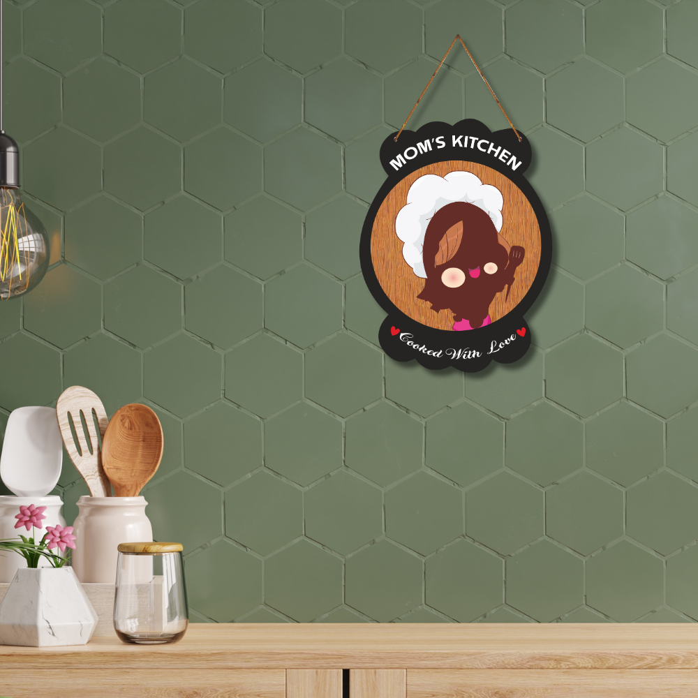 Celebrate the heart of every home with this adorable Mom’s Kitchen wall hanging. Designed with a cute chef illustration and the warm message Cooked with Love, it perfectly captures the essence of homemade meals. A delightful addition to any kitchen décor, this wall piece makes a thoughtful gift for moms who fill every dish with love.