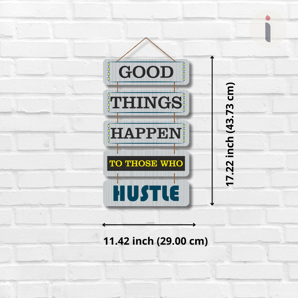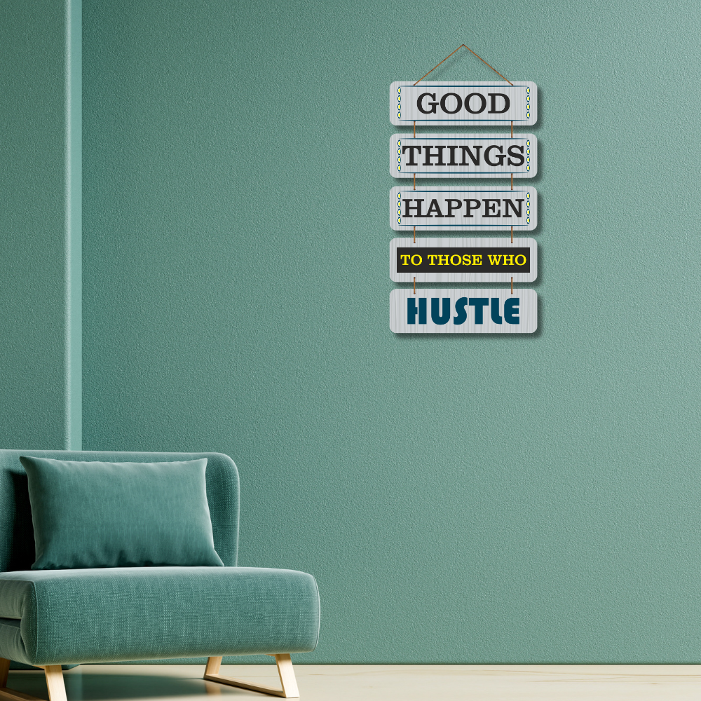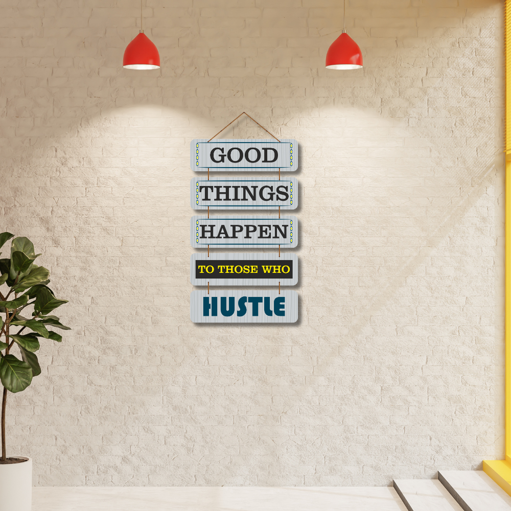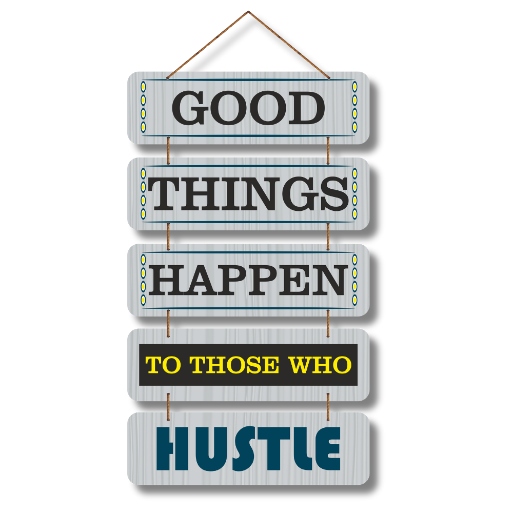 Bring home this bold and inspiring wall hanging that reminds you daily – “Good things happen to those who hustle.” Designed with a modern touch, it sparks motivation and positivity, making it perfect for offices, study rooms, or gyms. A must-have décor piece for dreamers, doers, and go-getters.