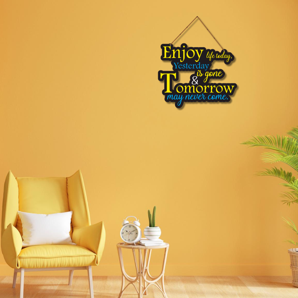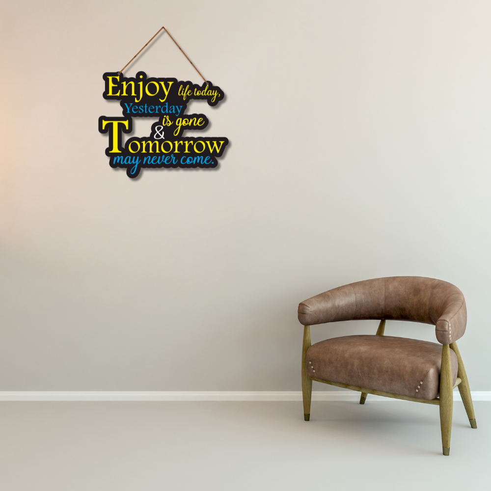 This motivational wall hanging is a daily reminder to cherish the present moment. With the message “Enjoy life today, yesterday is gone & tomorrow may never come,” it inspires mindfulness and joyful living. Perfect décor for homes, offices, study rooms, and gifting—it adds positivity, warmth, and a refreshing outlook to any space. ✨