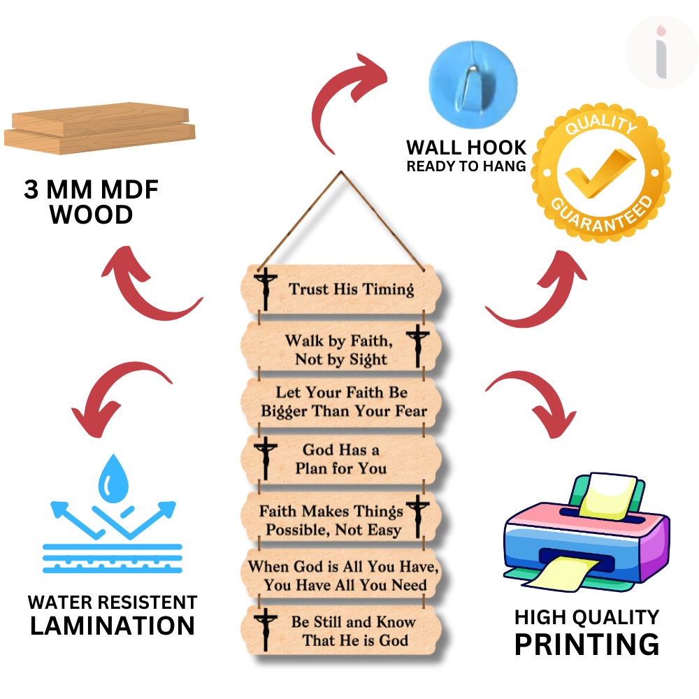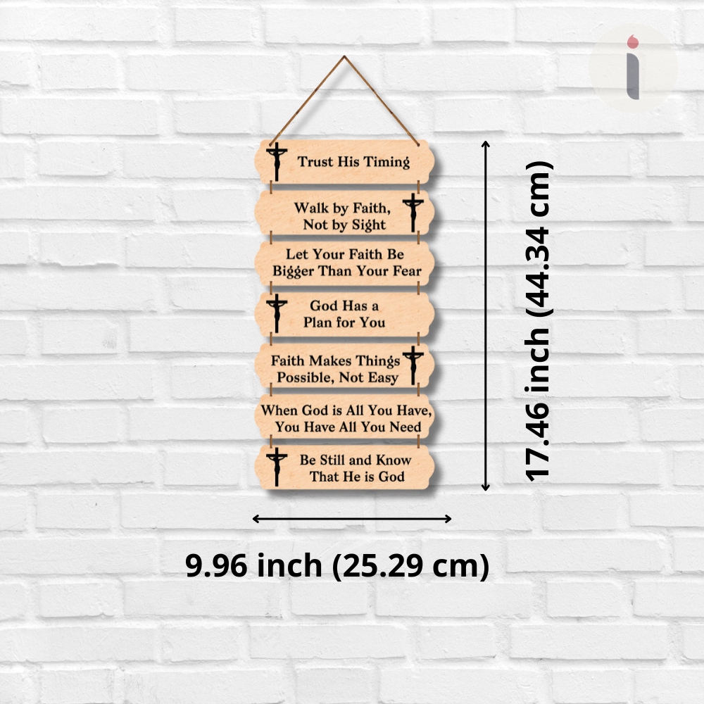 This spiritual wall hanging is filled with faith-strengthening reminders like “Trust His Timing” and “Let Your Faith Be Bigger Than Your Fear.” Designed in a rustic wooden style with cross icons, it brings hope, peace, and encouragement to any corner of your home. Perfect for prayer rooms, bedrooms, or gifting to someone who needs divine motivation and comfort.