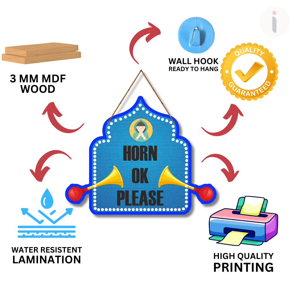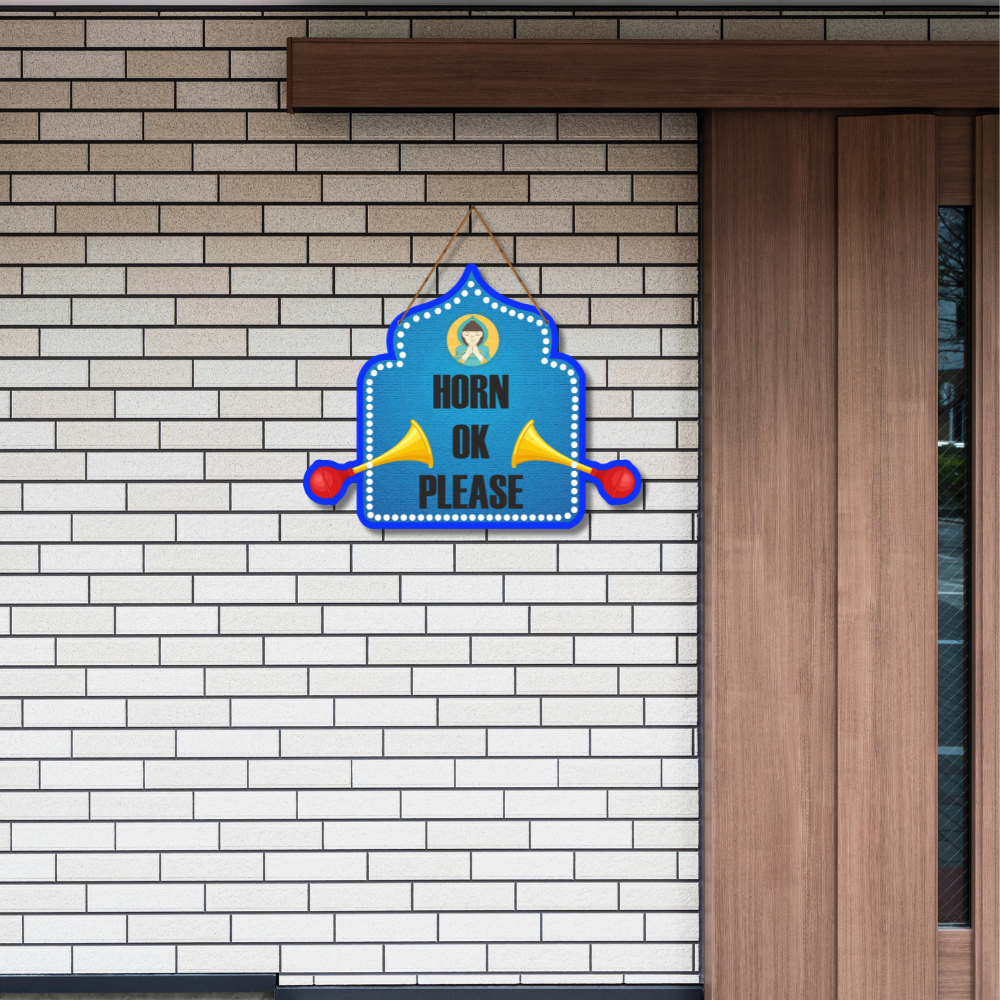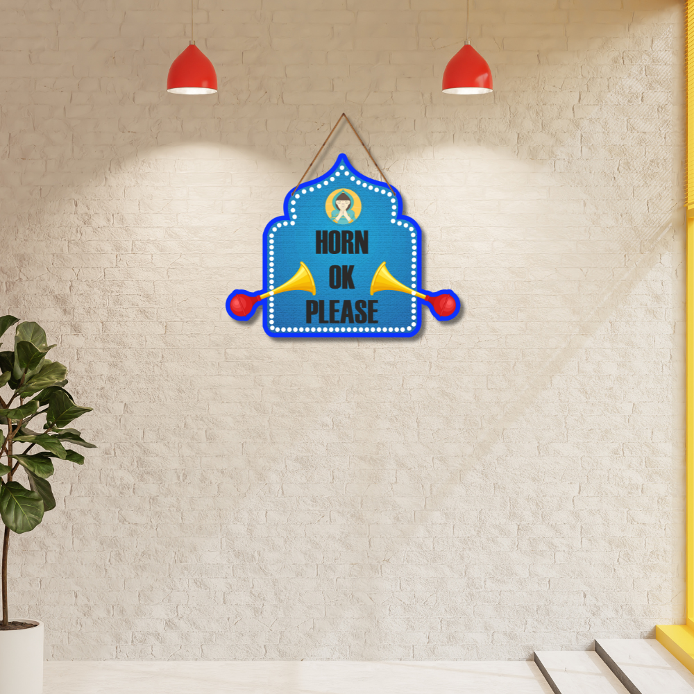 Bring a touch of quirky Indian truck art to your space with this vibrant Horn OK Please wall hanging. Designed with bold colors, traditional horns, and a cultural Namaste graphic, it adds humor and charm to your décor. Perfect for cafes, garages, or homes that love fun, desi style, and a lively vibe.