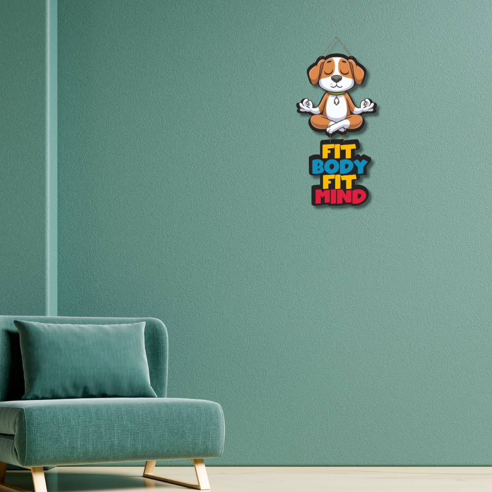A playful yet mindful vibe to your space with this adorable yoga-inspired dog wall hanging. With the mantra Fit Body, Fit Mind, it encourages balance, health, and positivity in daily life. Perfect for fitness lovers, pet parents, or anyone seeking cheerful motivation in their home or office.