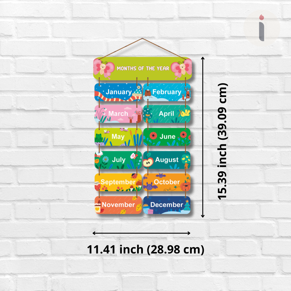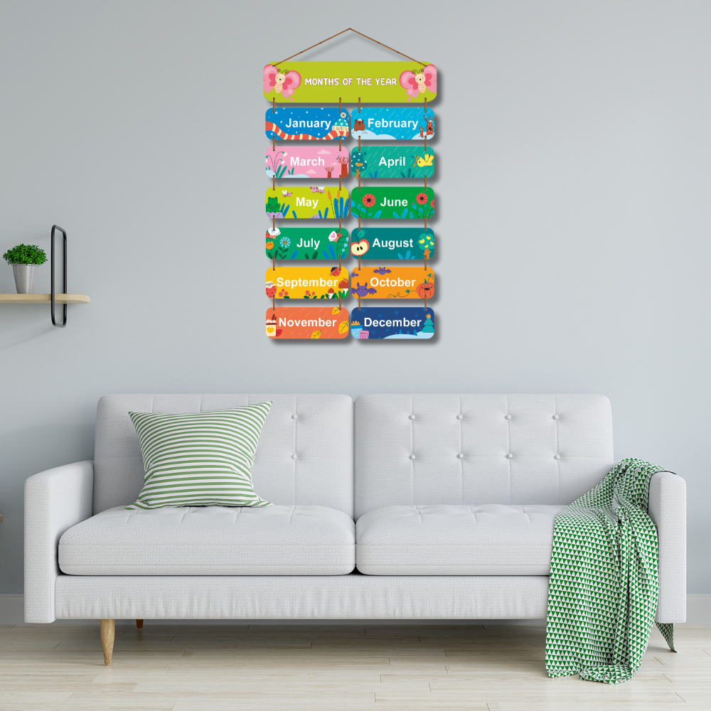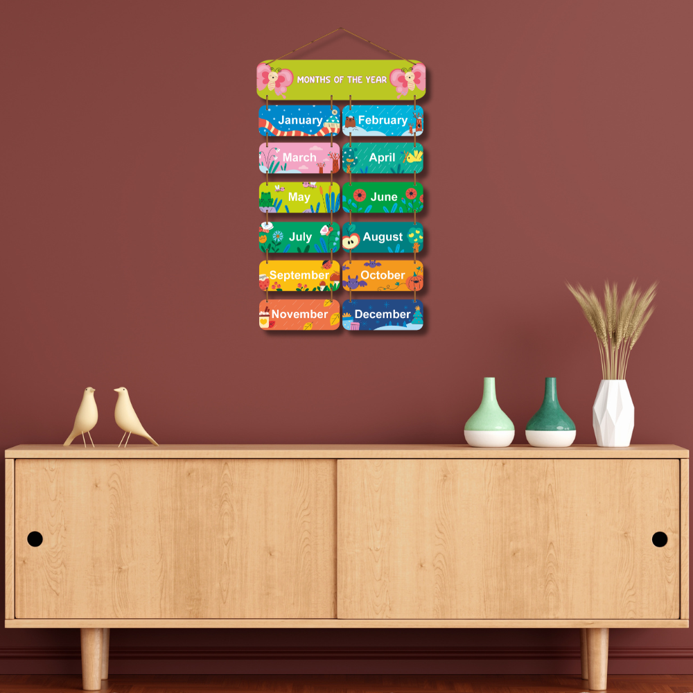 Make learning fun with this vibrant “Months of the Year” wall hanging, designed with playful illustrations for each month. Bright colors and cute graphics help children easily recognize and remember all twelve months. Perfect for classrooms, kids’ rooms, or play areas, this educational décor adds both knowledge and cheer, making learning engaging and enjoyable every day.
