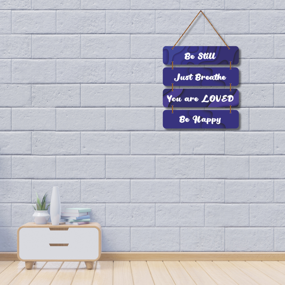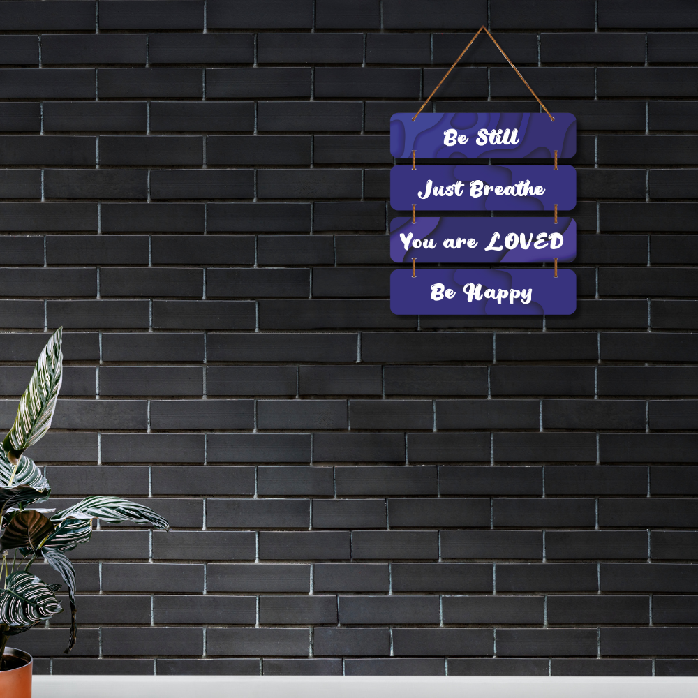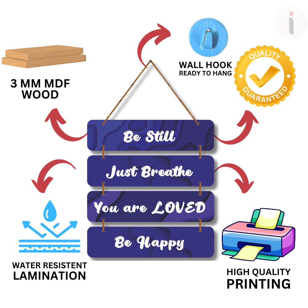 This calming wall hanging spreads positivity with gentle reminders: Be Still, Just Breathe, You are Loved, Be Happy. Designed in soothing shades of blue, it inspires mindfulness, love, and inner peace. Perfect for bedrooms, living spaces, or meditation corners, it adds warmth and serenity to your décor while uplifting your mood every time you see it.