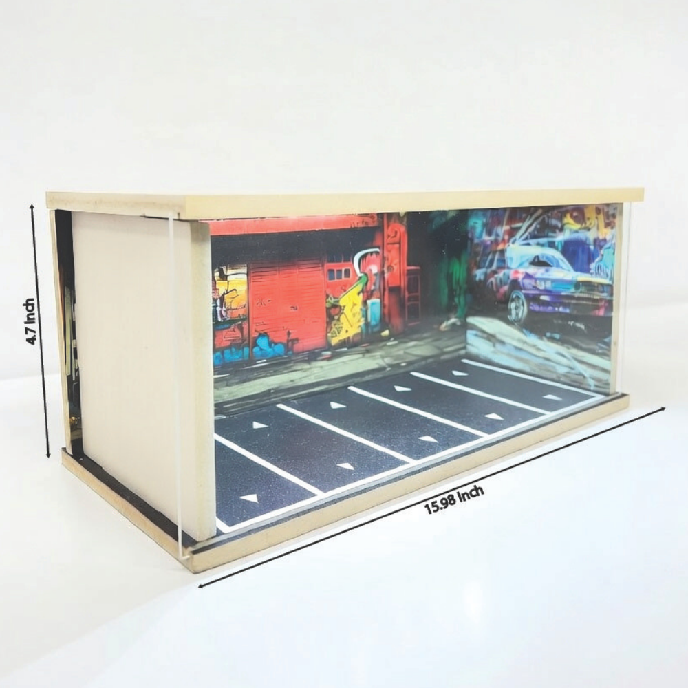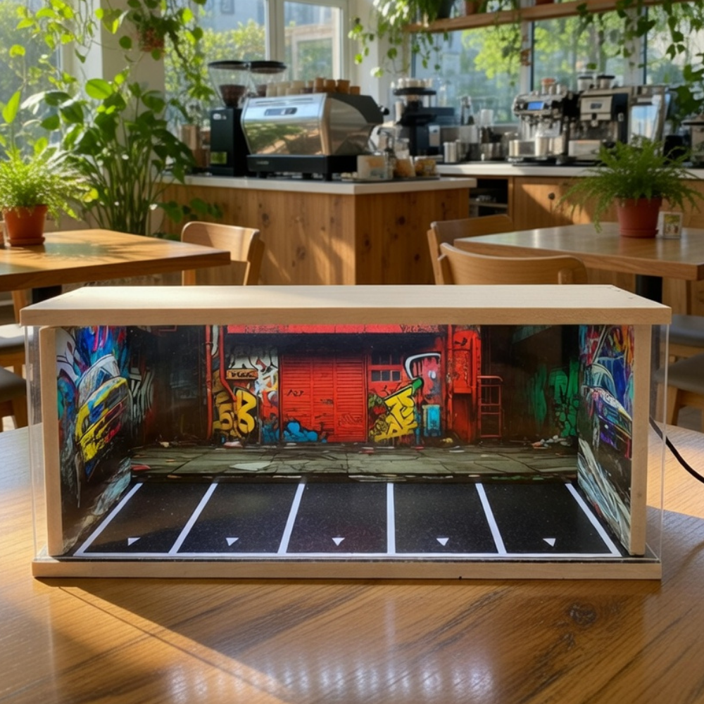 Designed to stand out, this diorama transforms your diecast collection into a lively street scene. The detailed graffiti artwork and realistic parking layout give your cars a dynamic, “just parked in the city” feel, making it perfect for modern desks and creative spaces. ✨