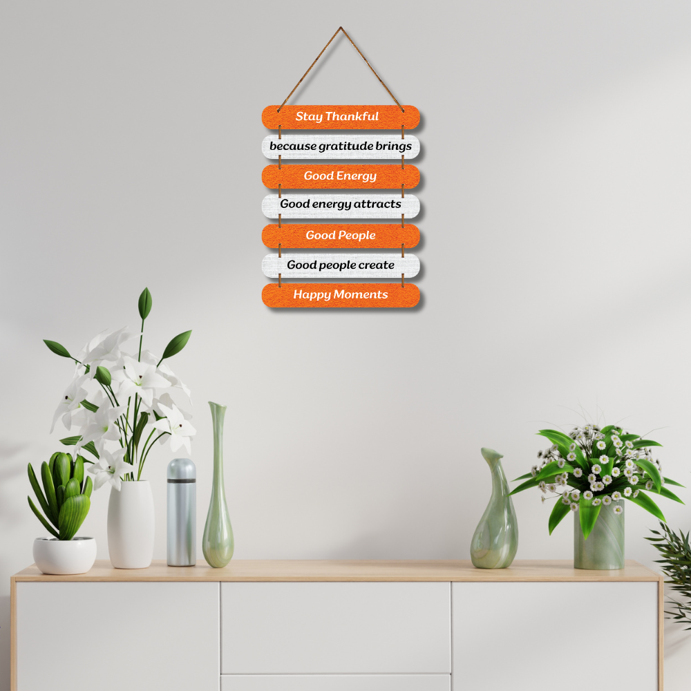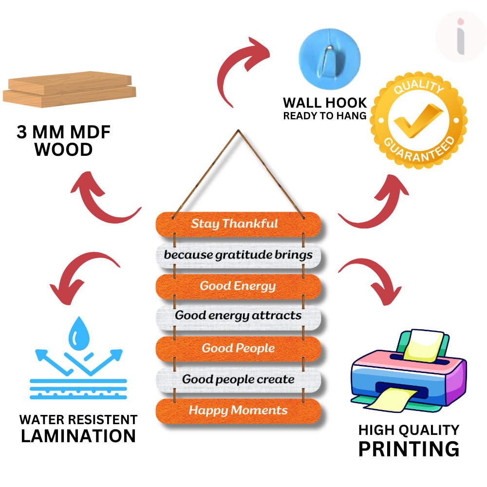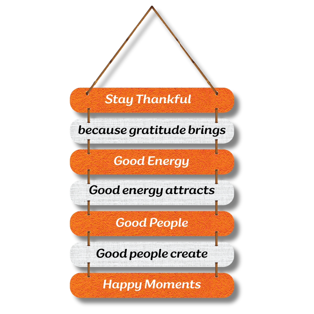 Bring positivity into your space with this inspiring “Stay Thankful” wooden wall hanging. Each panel beautifully reminds you that gratitude brings good energy, attracts good people, and creates happy moments. Ideal for homes, living rooms, workplaces, or meditation corners, this décor piece adds warmth, mindfulness, and a daily dose of gratitude to your environment—because a thankful heart changes everything. 🌿✨