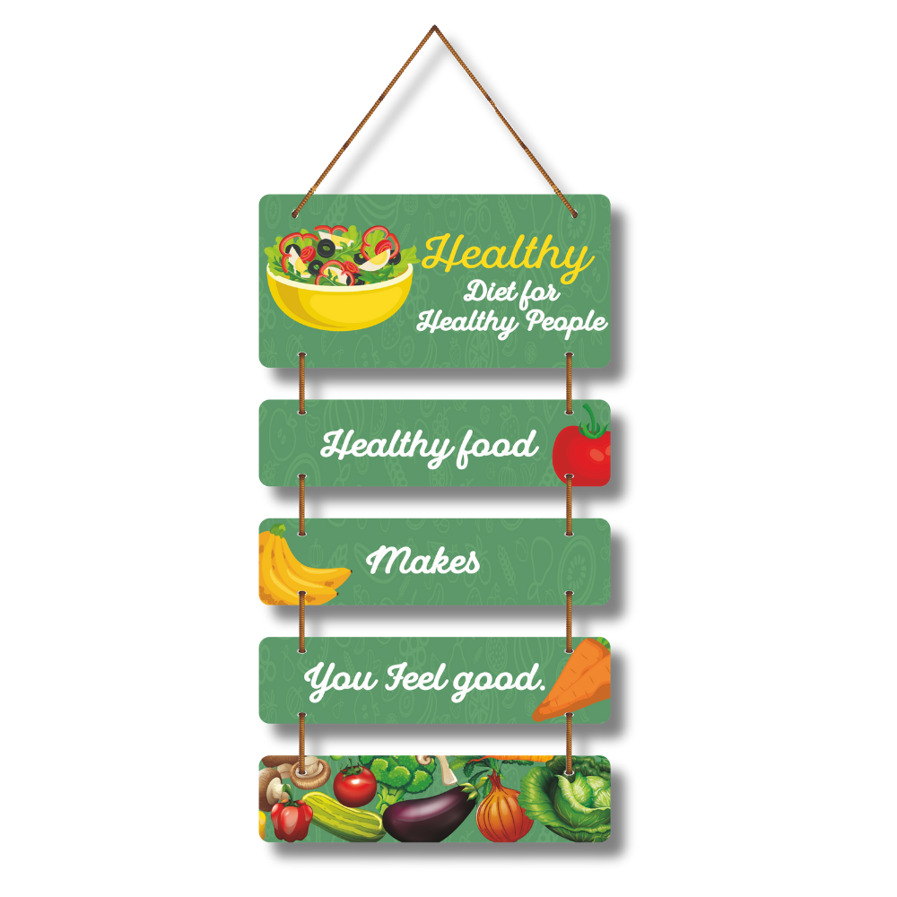 A touch of wellness to your kitchen or dining area with this vibrant Healthy Diet wooden wall hanging. Featuring cheerful quotes like “Healthy food makes you feel good”, along with colorful fruit and veggie designs, it inspires mindful eating. Perfect for homes, cafés, restaurants, or gifting health-conscious loved ones.