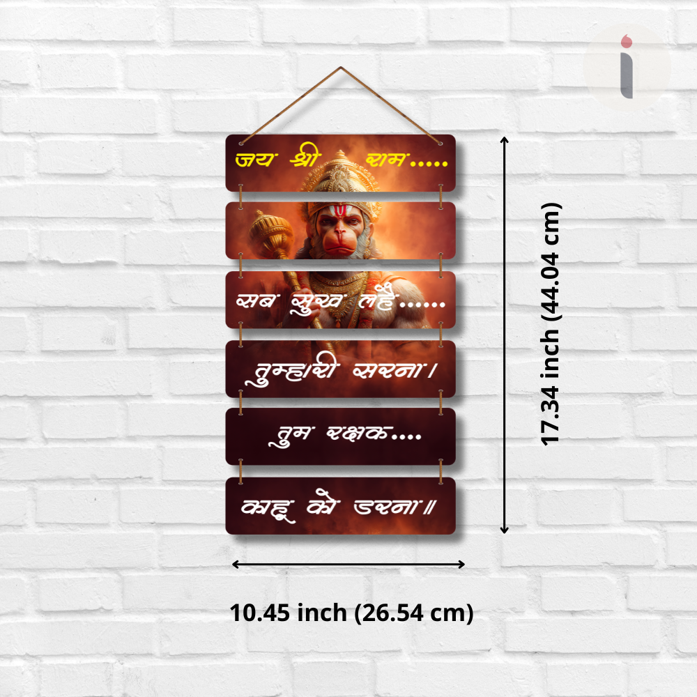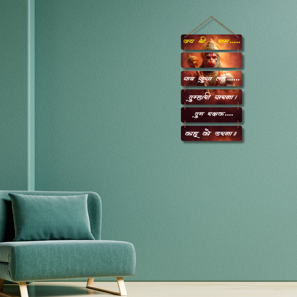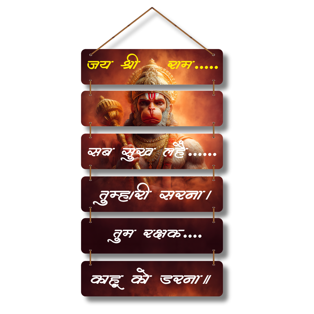 Bring home the divine strength and devotion of Lord Hanuman with this beautifully crafted wall hanging. Featuring sacred verses and a detailed image of Bajrang Bali, it radiates protection, courage, and positivity. Ideal for your pooja room, entrance, or living space, this artwork reminds you of Hanuman Ji’s eternal grace and unwavering faith in Lord Rama.
