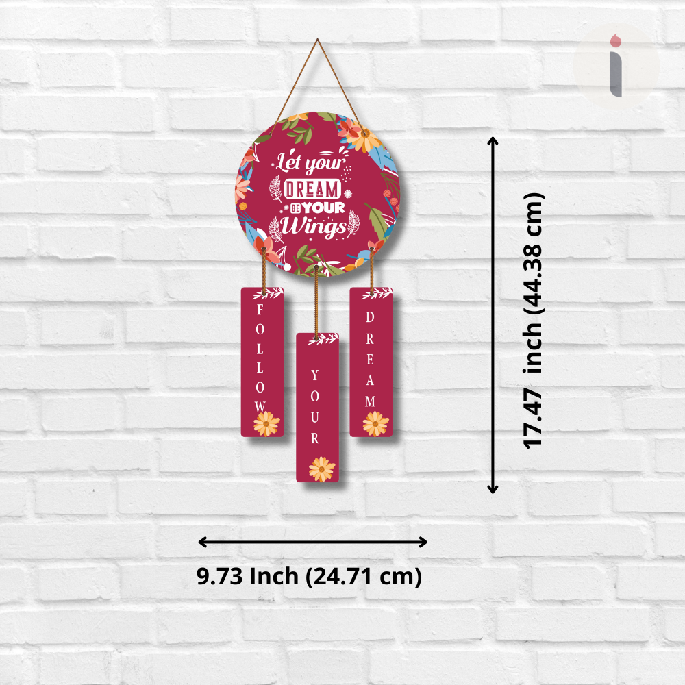 A touch of motivation to your home with this vibrant floral dream-themed wall hanging. Featuring the uplifting message “Let your dream be your wings”, it reminds you to stay inspired and chase your passions. Perfect for bedrooms, study areas, or creative spaces, this piece encourages positivity, ambition, and the courage to follow your dreams every day.