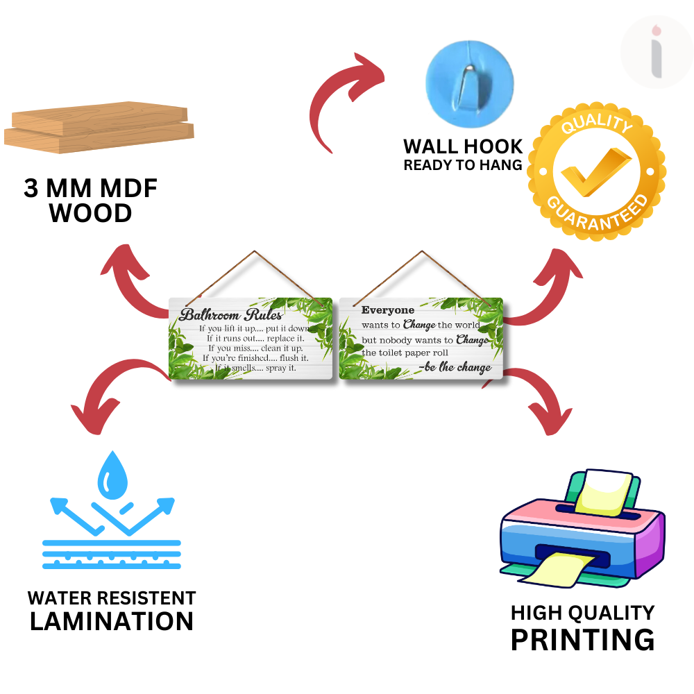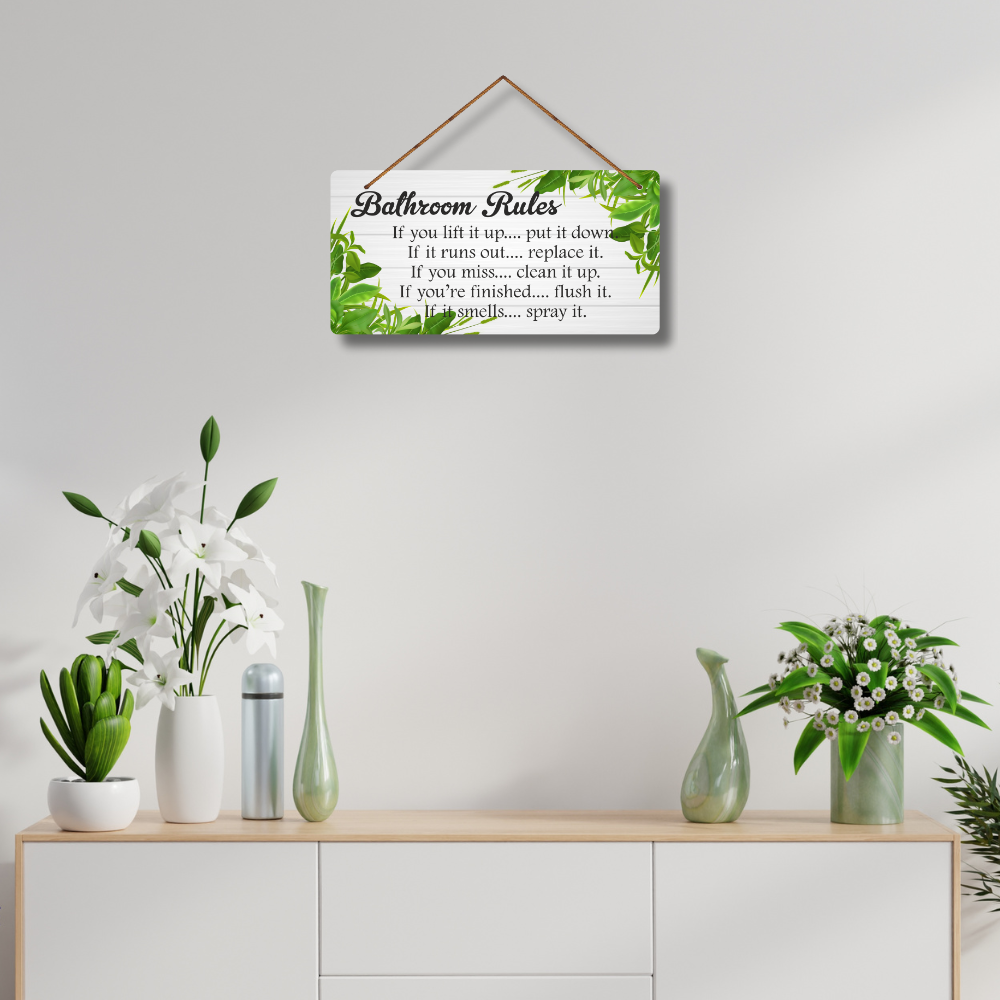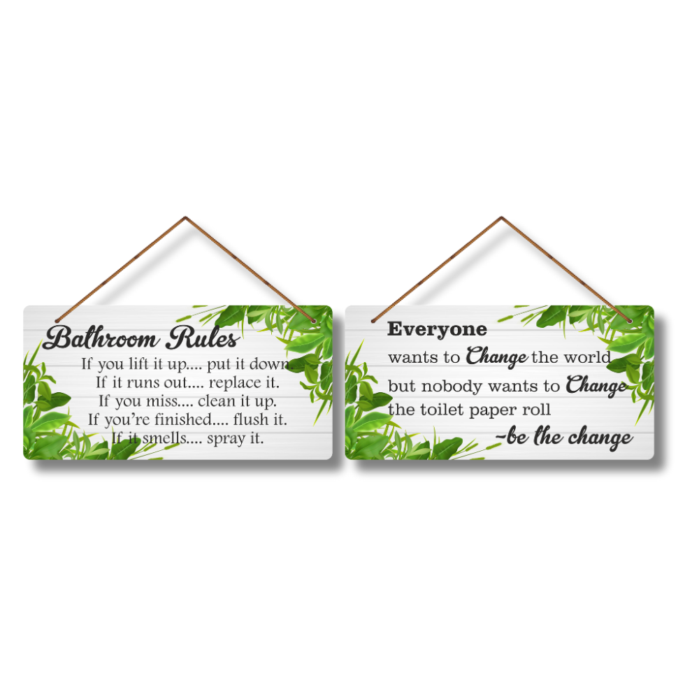 A dash of humor and practicality to your washroom with these quirky bathroom wall rules. With witty reminders about etiquette and cleanliness, these signs bring smiles while encouraging good habits. Stylishly designed with leafy accents, they’re perfect for making your bathroom space both lively and well-mannered.