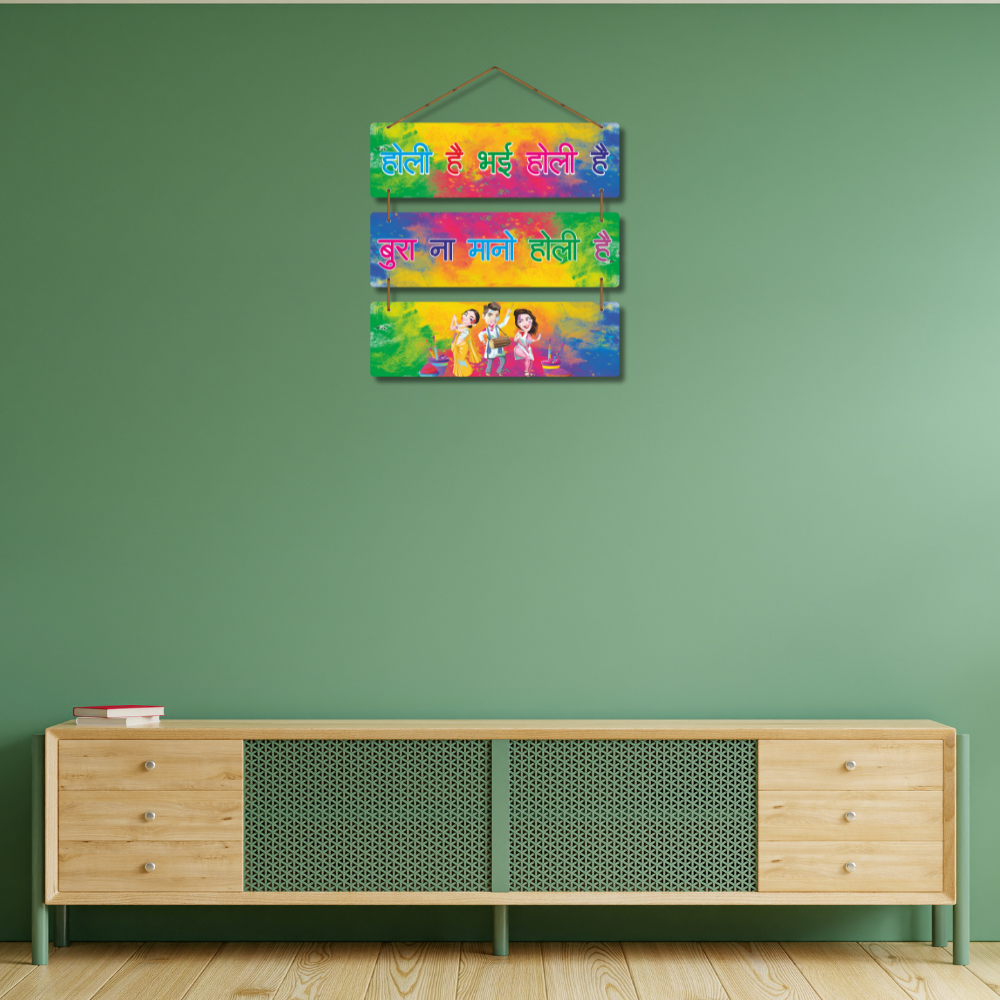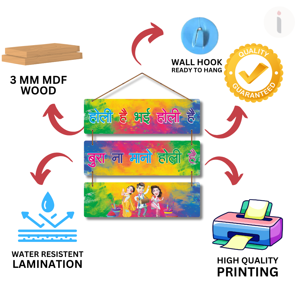 Bright, bold, and full of festive vibes, this Holi wall hanging celebrates the playful spirit of colors with the iconic line “Bura Na Mano Holi Hai.” Adorned with vibrant splashes and cheerful characters, it adds joy and liveliness to any space. A perfect décor to spread smiles, laughter, and togetherness during the festival of colors.