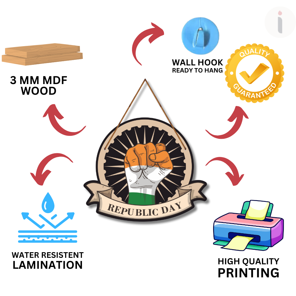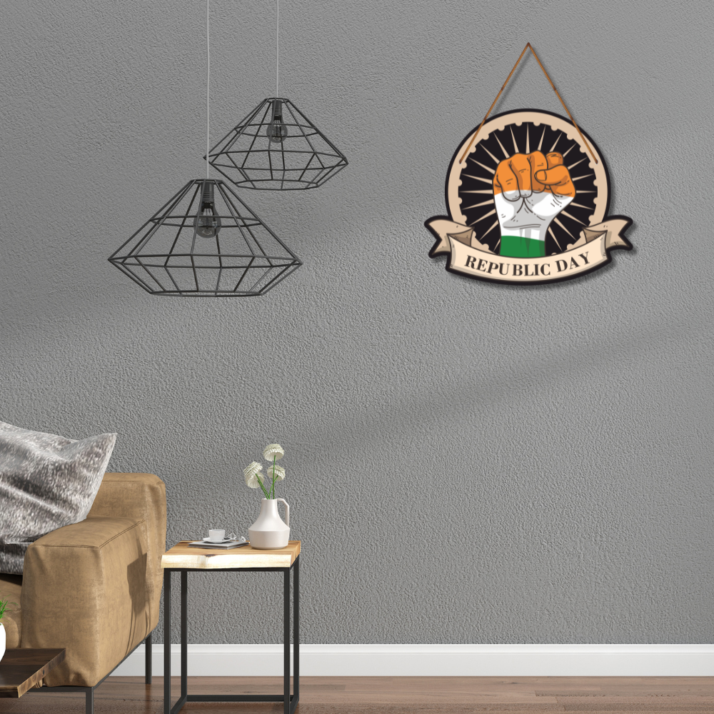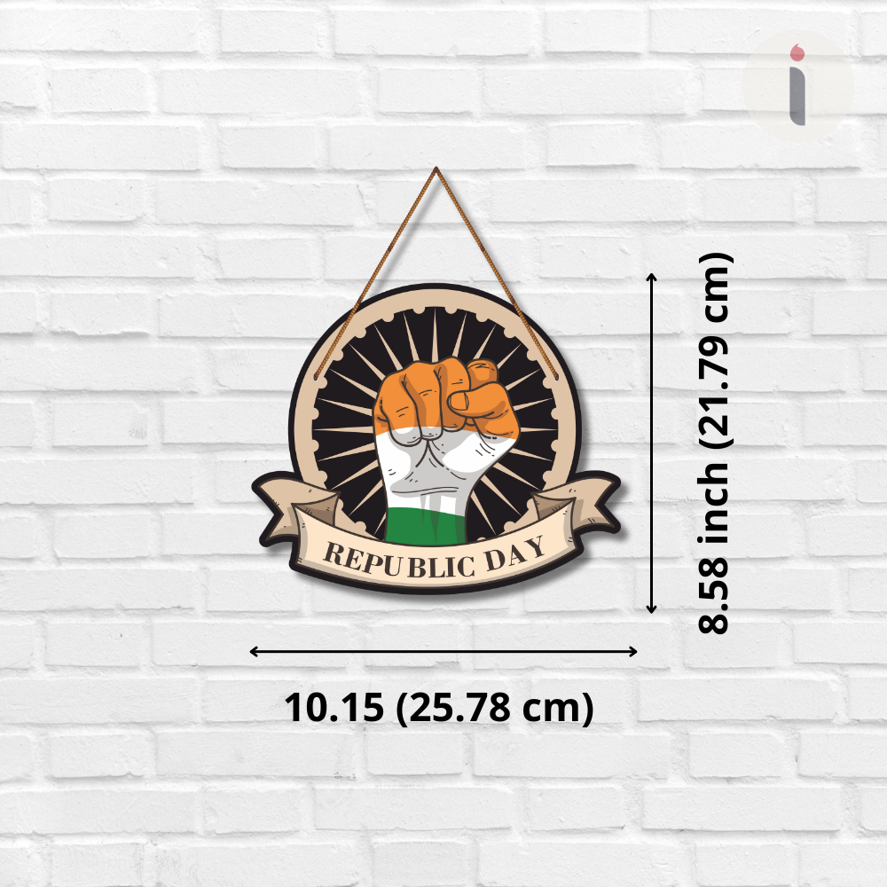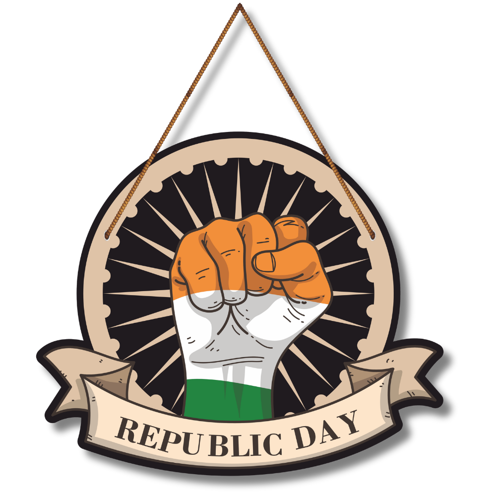Honor the pride of the nation with this striking “Republic Day” wooden wall hanging. Designed with a bold tricolor fist and Ashoka Chakra backdrop, it symbolizes unity, power, and patriotism. Perfect for January 26th celebrations, school décor, offices, homes, and cultural events. A meaningful piece that evokes respect for India’s Constitution, freedom, and national spirit. 🇮🇳✨