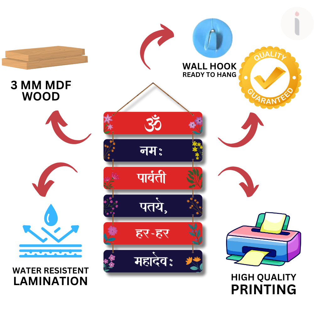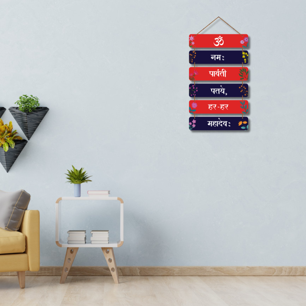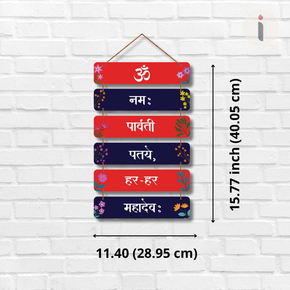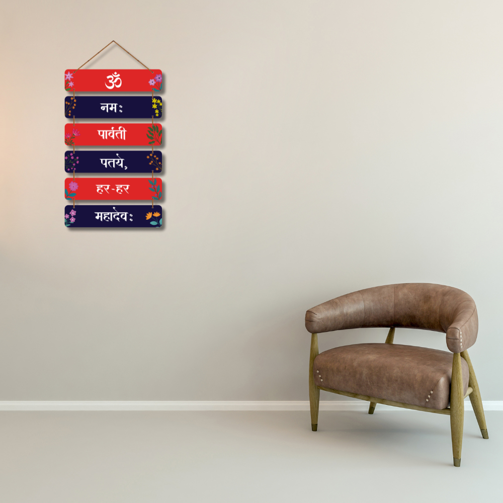 Bring divine energy into your home with this Om Namah Parvati Pataye, Har Har Mahadev wooden wall hanging. Designed in alternating red and navy panels with floral accents, it beautifully displays a sacred Shiva–Parvati mantra. Perfect for temples, pooja rooms, entrances, meditation spaces, and gifting. A spiritually uplifting décor piece that radiates devotion and blessings. 🙏✨