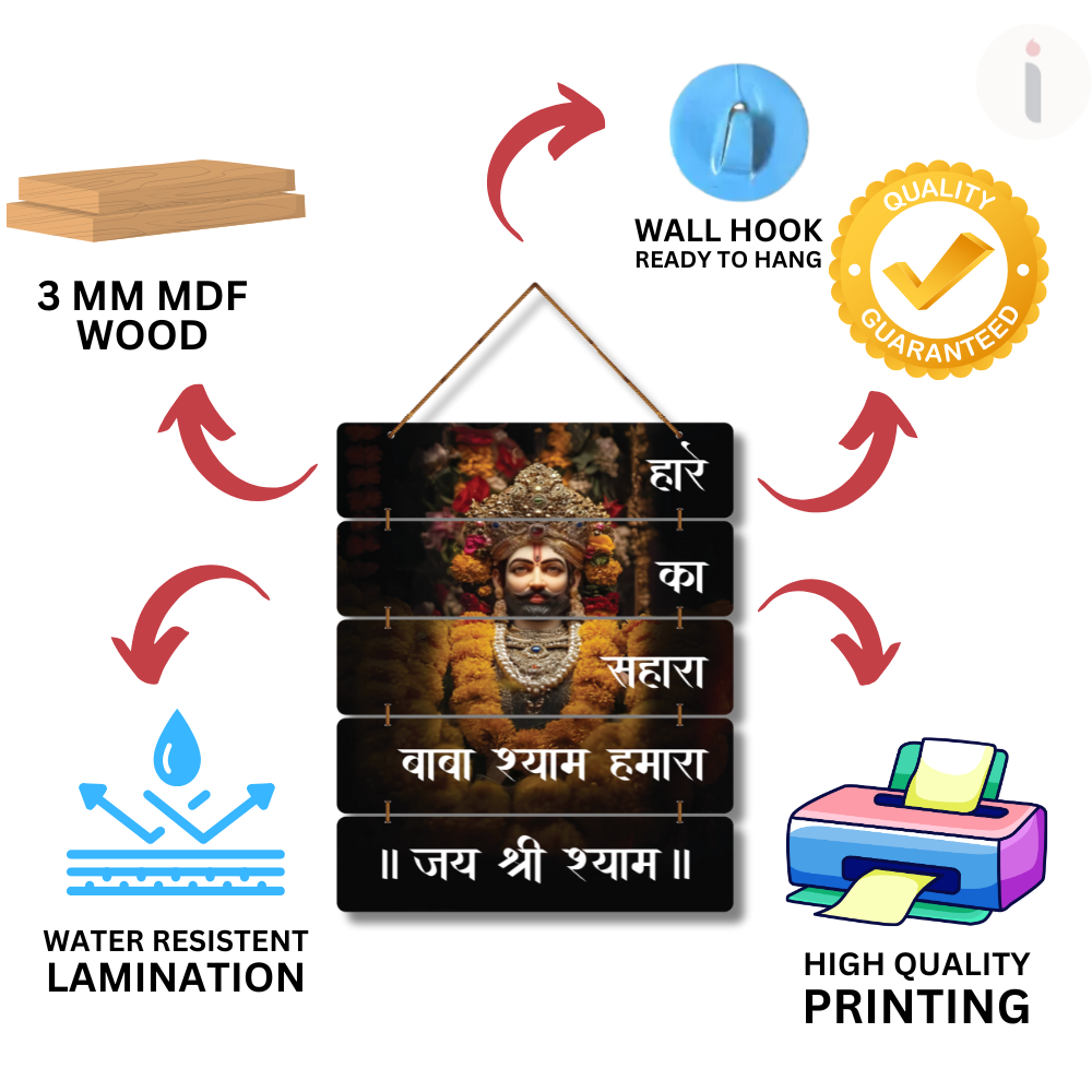 Celebrate divine faith with this stunning “Hare Ka Sahara, Baba Shyam Hamara” Wooden Wall Hanging featuring a detailed and vibrant image of Khatu Shyam Ji. Designed for pooja rooms, living rooms, or gifting, it brings a spiritual aura, hope, and emotional comfort. A perfect devotional décor piece to keep blessings close and hearts connected. 🙏✨