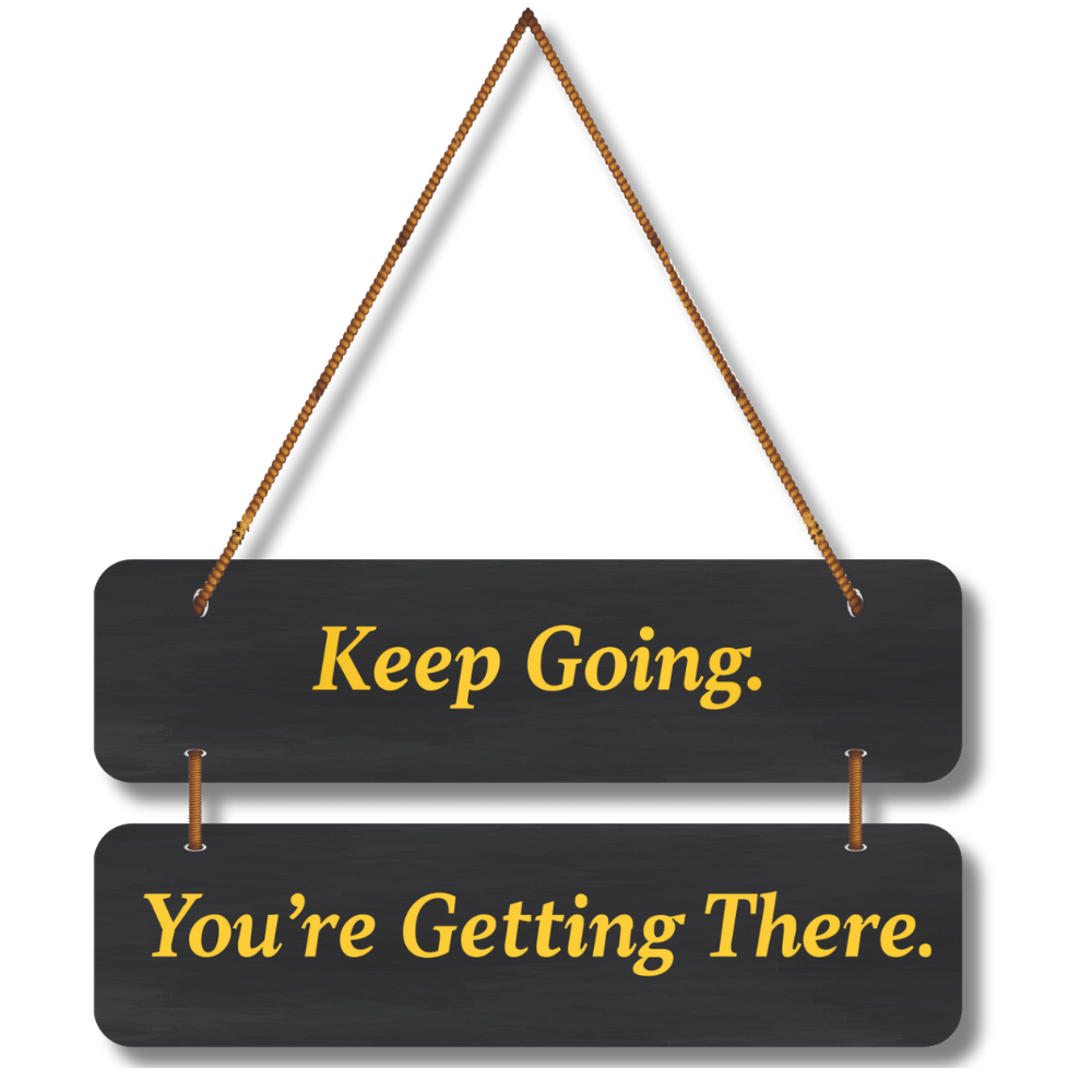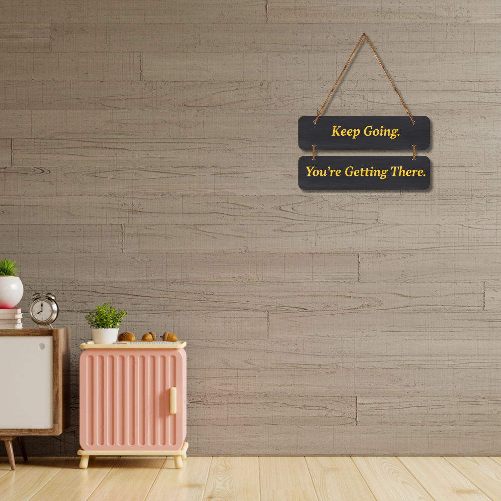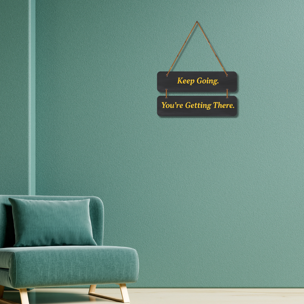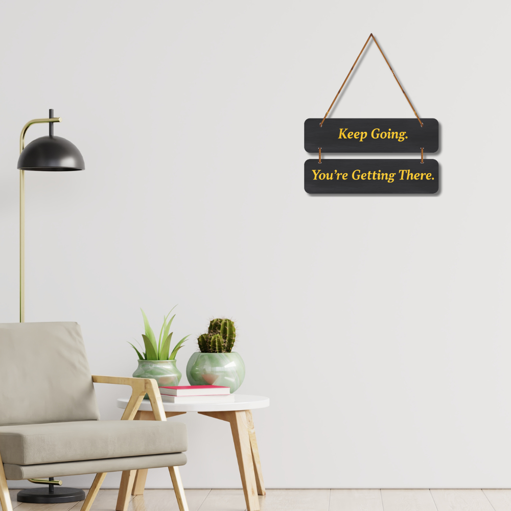 This motivational wall hanging carries the powerful message, “Keep Going. You’re Getting There.” Designed in a sleek black background with bold golden letters, it serves as a daily reminder to stay persistent and focused. Perfect for home, office, or study spaces, this piece inspires positivity, determination, and resilience, encouraging you to never give up on your journey.