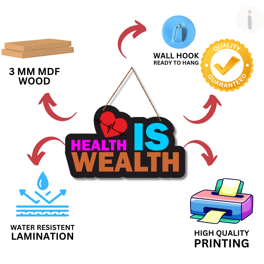 Elevate your fitness zone or home with this bold “Health is Wealth” wooden wall hanging. Designed with vibrant typography, a heart graphic, and modern style, it inspires daily wellness and self-care. Perfect for gym rooms, offices, kitchens, hospitals, or wellness studios, it serves as a constant reminder that good health is life’s greatest treasure. 💪❤️✨