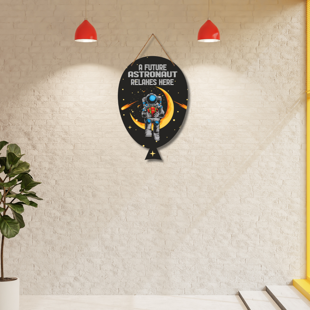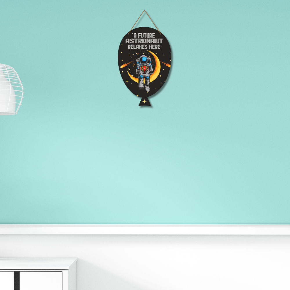 Inspire little dreamers with this unique astronaut-themed wooden wall hanging that reads “A Future Astronaut Relaxes Here.” Featuring a vibrant design of an astronaut sitting on the moon amidst stars and comets, it’s perfect for kids’ rooms, study corners, or play areas. This creative décor piece adds a fun cosmic touch while encouraging imagination, curiosity, and big dreams.