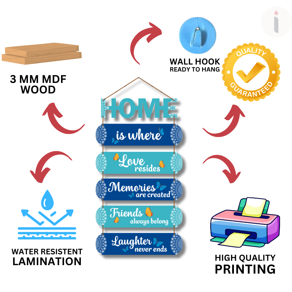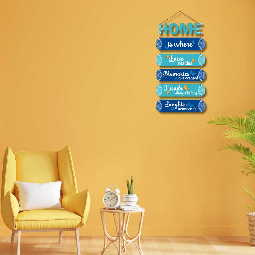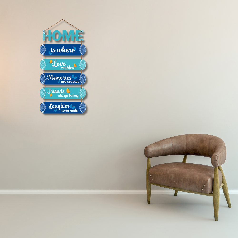 Bring warmth and joy into your home with this beautifully crafted “HOME is where Love resides” wall hanging. Designed in soothing shades of blue with butterflies and mandala accents, it adds a peaceful yet cheerful touch to any room. Perfect for living rooms, entryways, or gifting to loved ones who cherish togetherness.