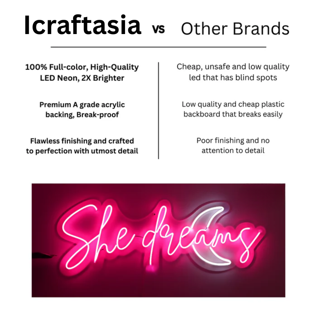 Icraftasia neon signs are handcrafted with advanced 2nd gen LED on high-quality 6MM transparent acrylic. Energy-efficient, durable, and easy to install—perfect for any space!