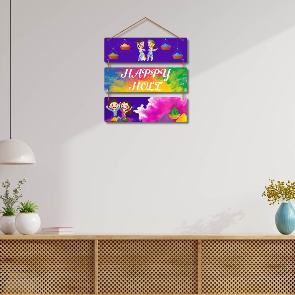 Celebrate the vibrant spirit of Holi with this cheerful wall hanging bursting with colorful hues and playful illustrations. Perfect for homes, parties, or festive décor, it captures the joy, unity, and love of the festival. A delightful reminder to spread happiness, throw colors of kindness, and embrace the true essence of togetherness.