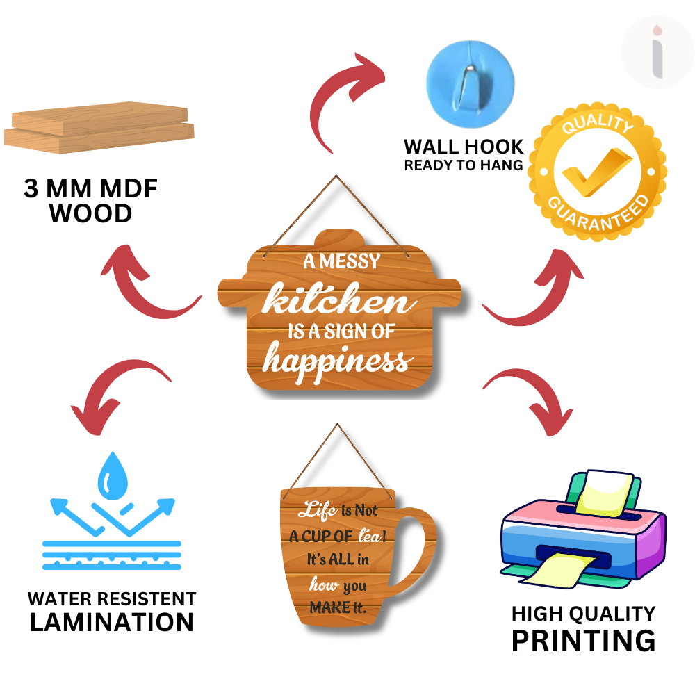 Bring charm and positivity to your space with these rustic wooden wall hangings. Designed in creative pot and cup shapes, they feature uplifting quotes that celebrate happiness in the kitchen and wisdom in life. Perfect for kitchens, dining areas, or as thoughtful gifts, they add warmth, style, and inspiration to everyday living.