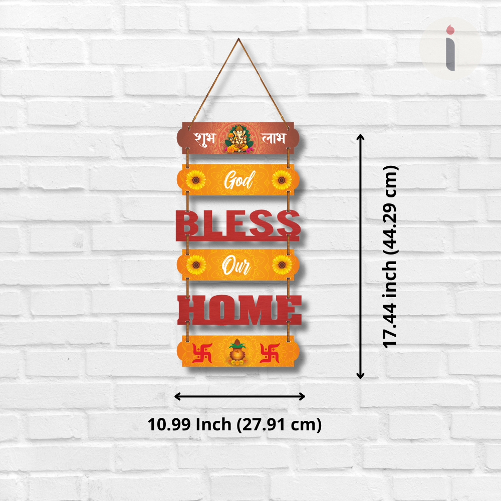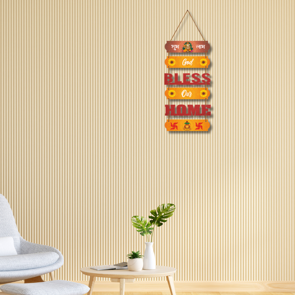 Invite positivity, peace, and prosperity into your space with this beautifully crafted God Bless Our Home wall hanging. Featuring Lord Ganesha, vibrant marigold motifs, and auspicious Swastik symbols, it radiates warmth and spiritual energy. Perfect for entrances, living rooms, or pooja rooms, this piece adds a sacred charm to your home.