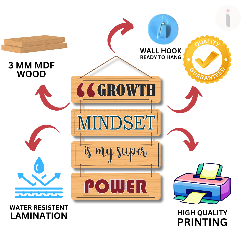 Inspire your journey with this motivational wall décor, featuring the empowering message “Growth Mindset is my Superpower.” Perfect for your home, office, or study space, it’s a daily reminder that resilience and positivity create success. A stylish piece of art that keeps you motivated to embrace challenges and keep growing.