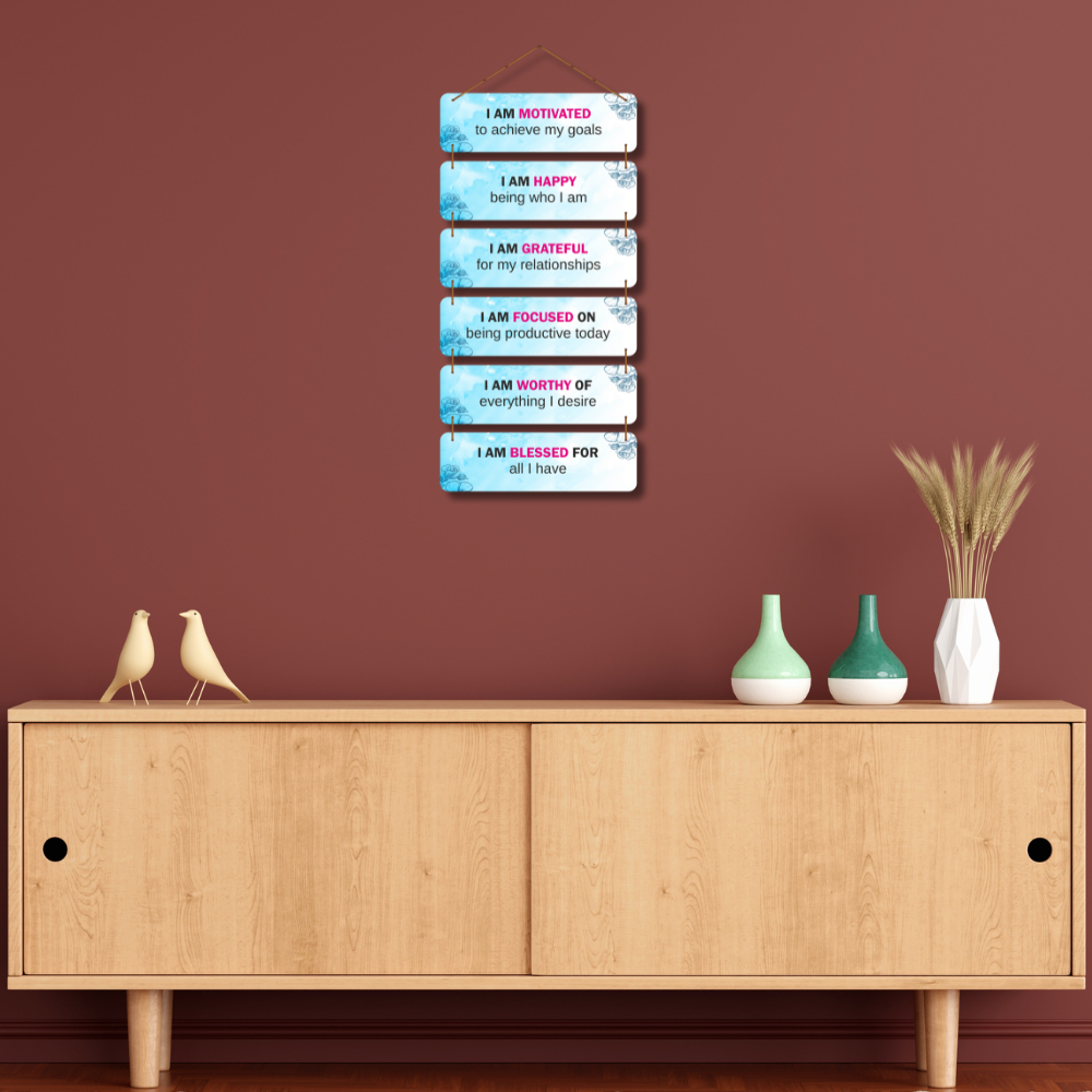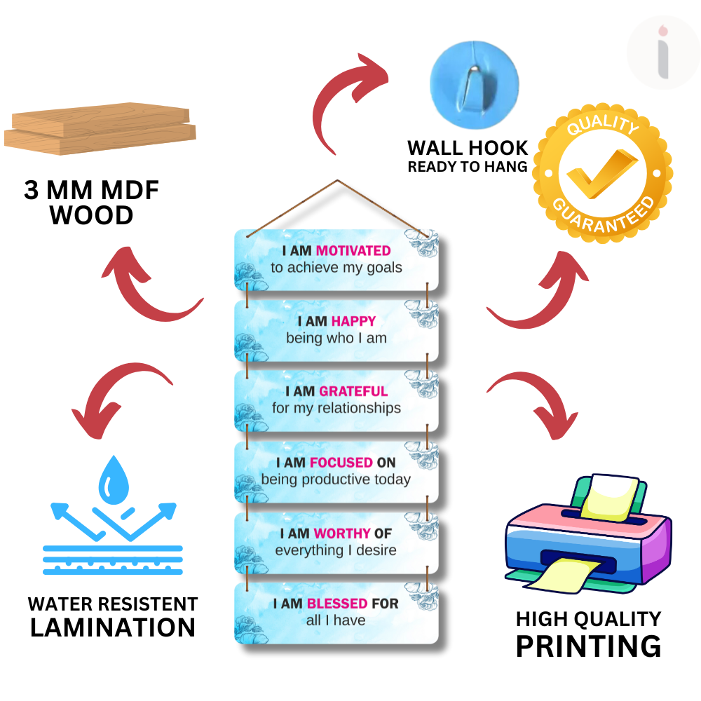 Elevate your mindset with this beautifully designed Affirmations Wall Hanging. Featuring powerful reminders of motivation, gratitude, focus, worthiness, and blessings, it radiates positivity every day. The soothing blue floral design makes it perfect for bedrooms, workspaces, or meditation corners, bringing peace and inspiration to your surroundings. A thoughtful gift for self-growth and inner happiness.