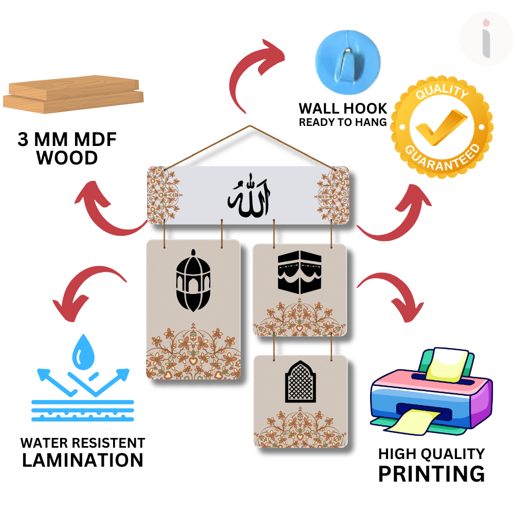Add a touch of peace and devotion to your space with this elegant Islamic wooden wall hanging ☪️✨. Featuring beautiful Arabic calligraphy of Allah and sacred Islamic symbols, it creates a calm and spiritual ambiance 🌙🤍. Perfect for homes, prayer rooms, or as a thoughtful gift, it reflects faith, harmony, and timeless Islamic art 🌸🕌.