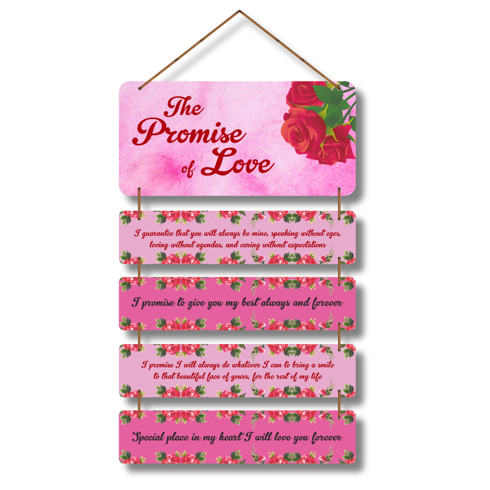 Express your heartfelt emotions with this romantic “The Promise of Love” wooden wall hanging 💖🌹. Adorned with soft pink tones, roses, and loving words, it beautifully captures commitment, care, and forever bonds ✨💑. Perfect for bedrooms, gifting to a loved one, anniversaries, or Valentine décor, this piece adds warmth, romance, and emotional charm to any space 💕🏡.